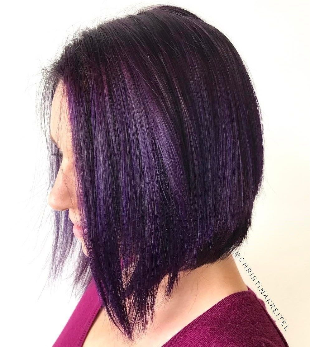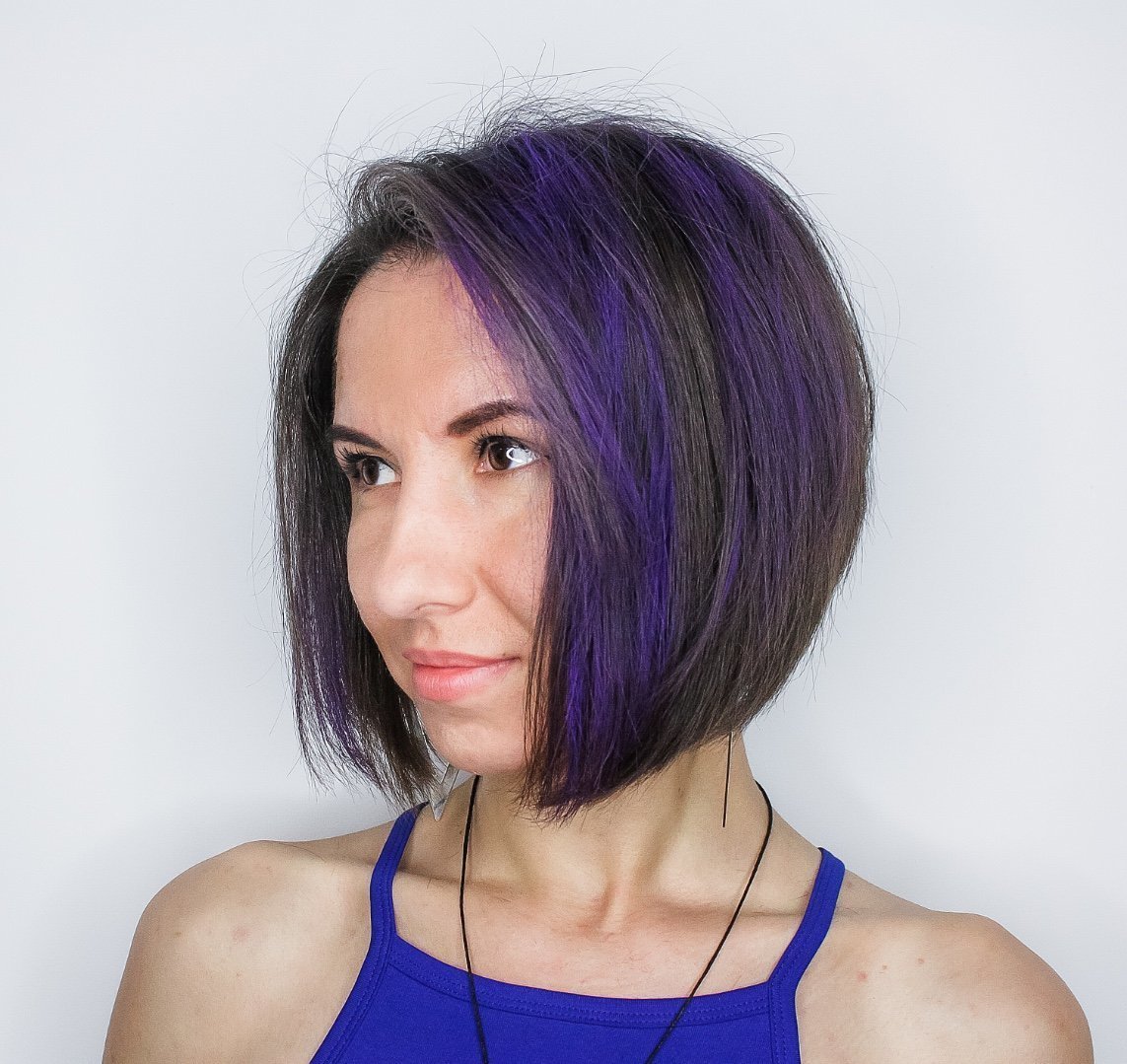 Фиолетовые пряди на коротких волосах
