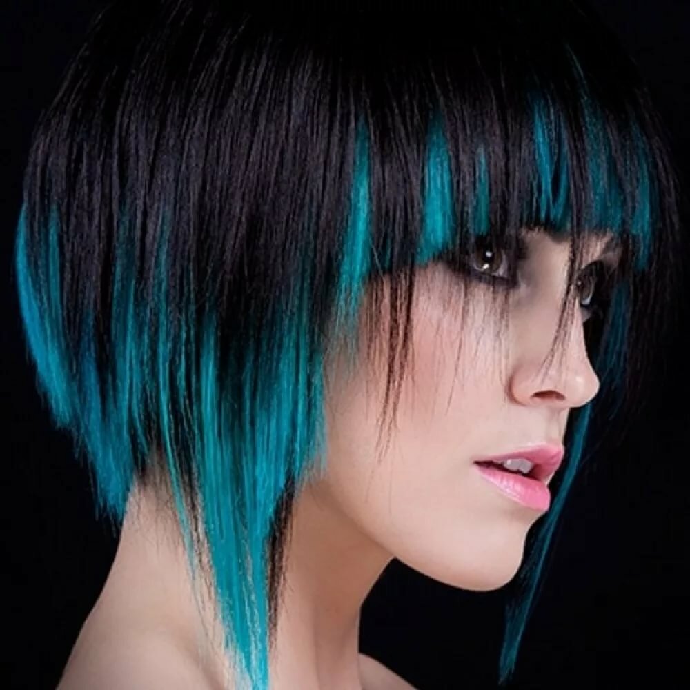 Короткие волосы с голубыми кончиками