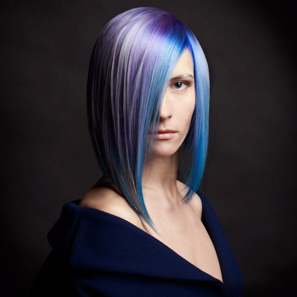 Покрасить волосы в два цвета голубой