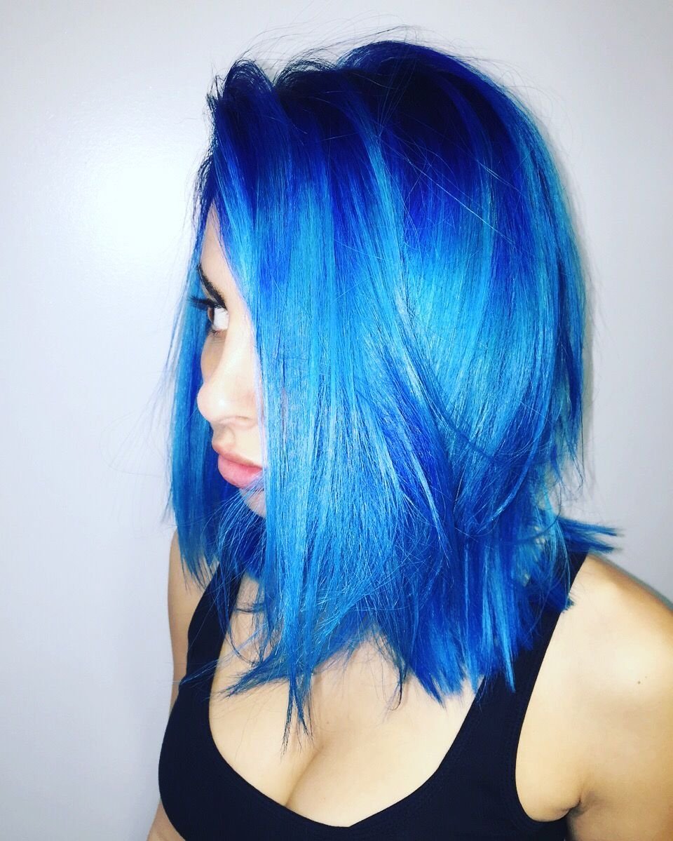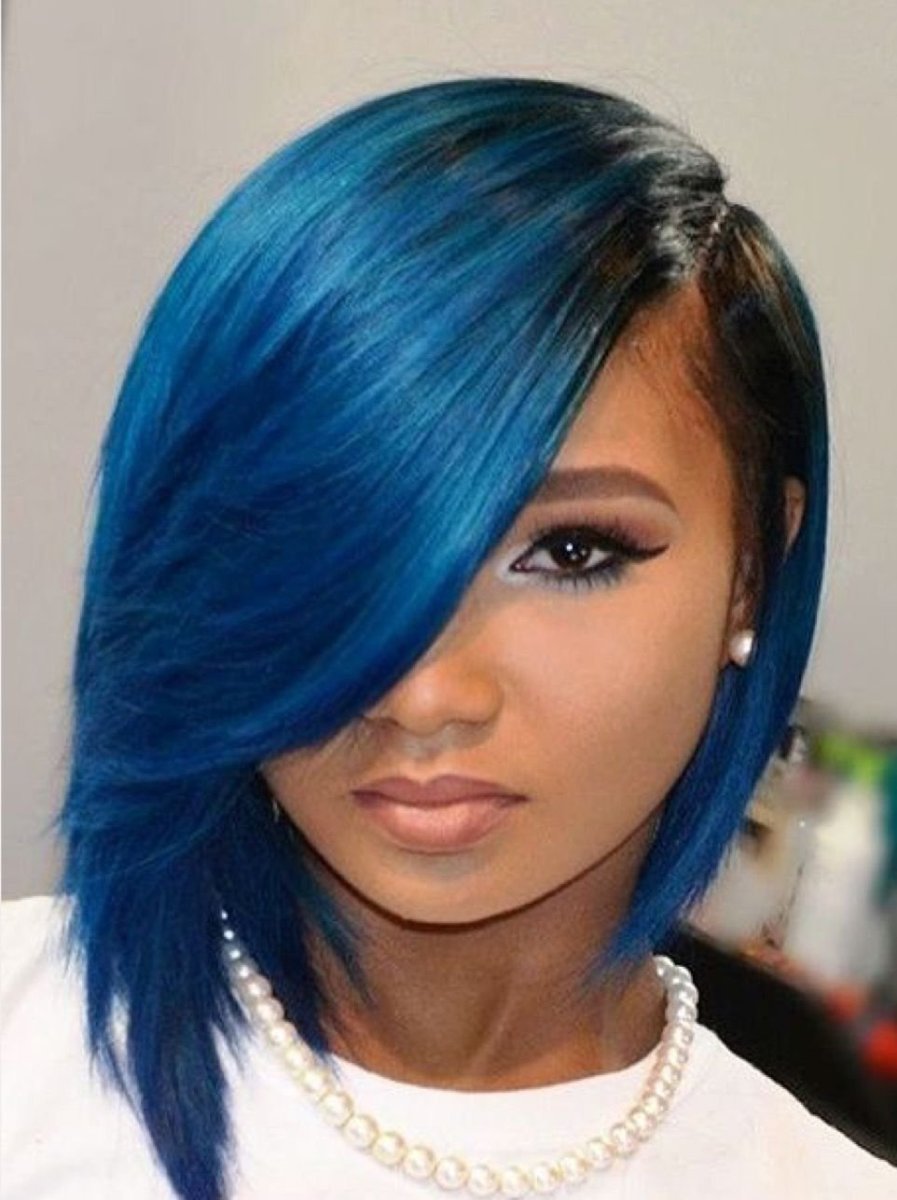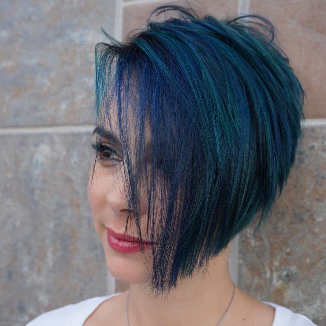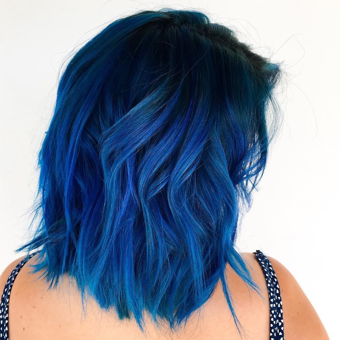 Синее окрашивание на короткие волосы