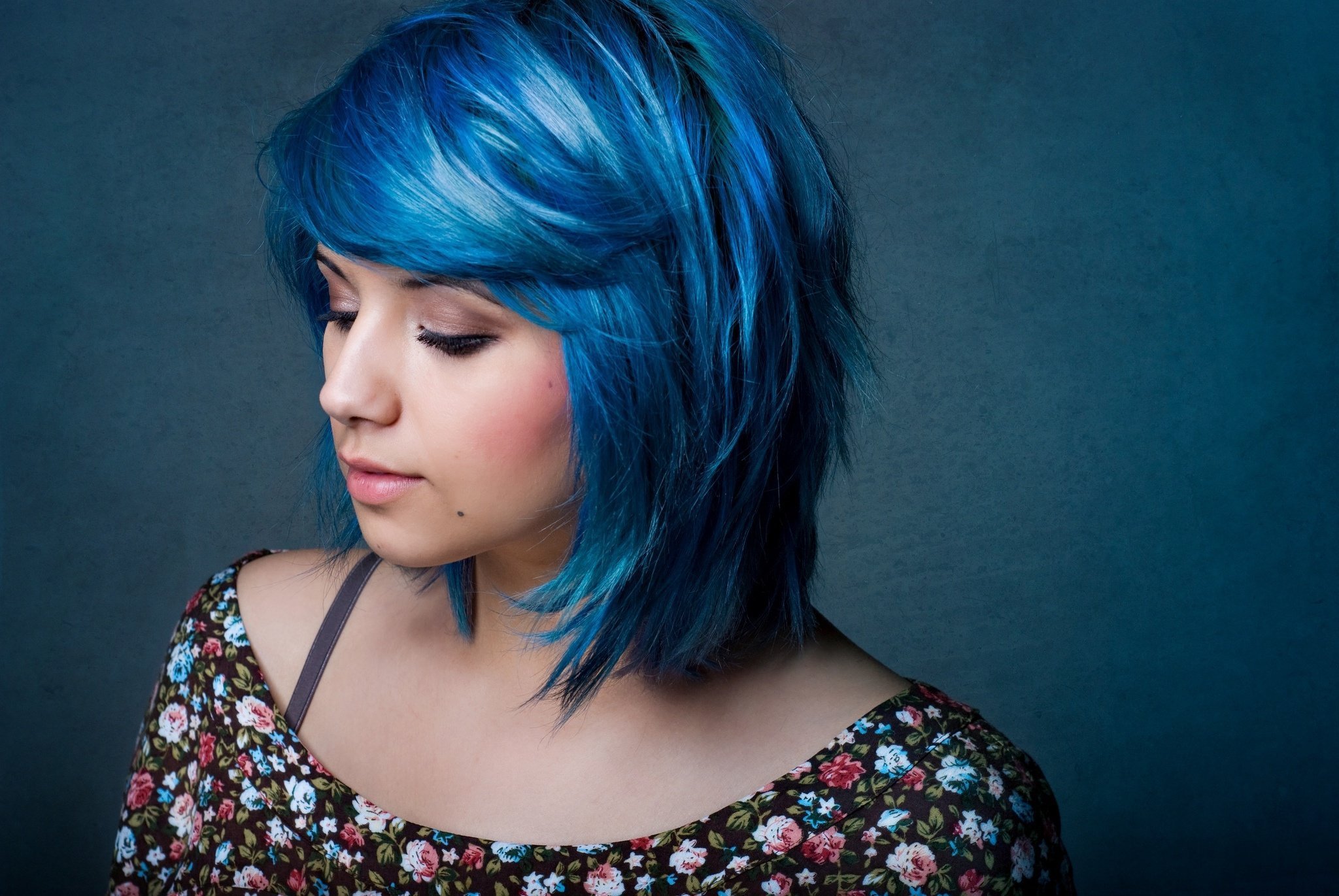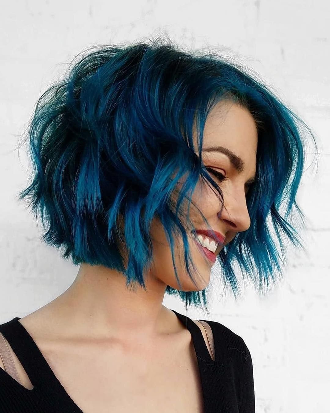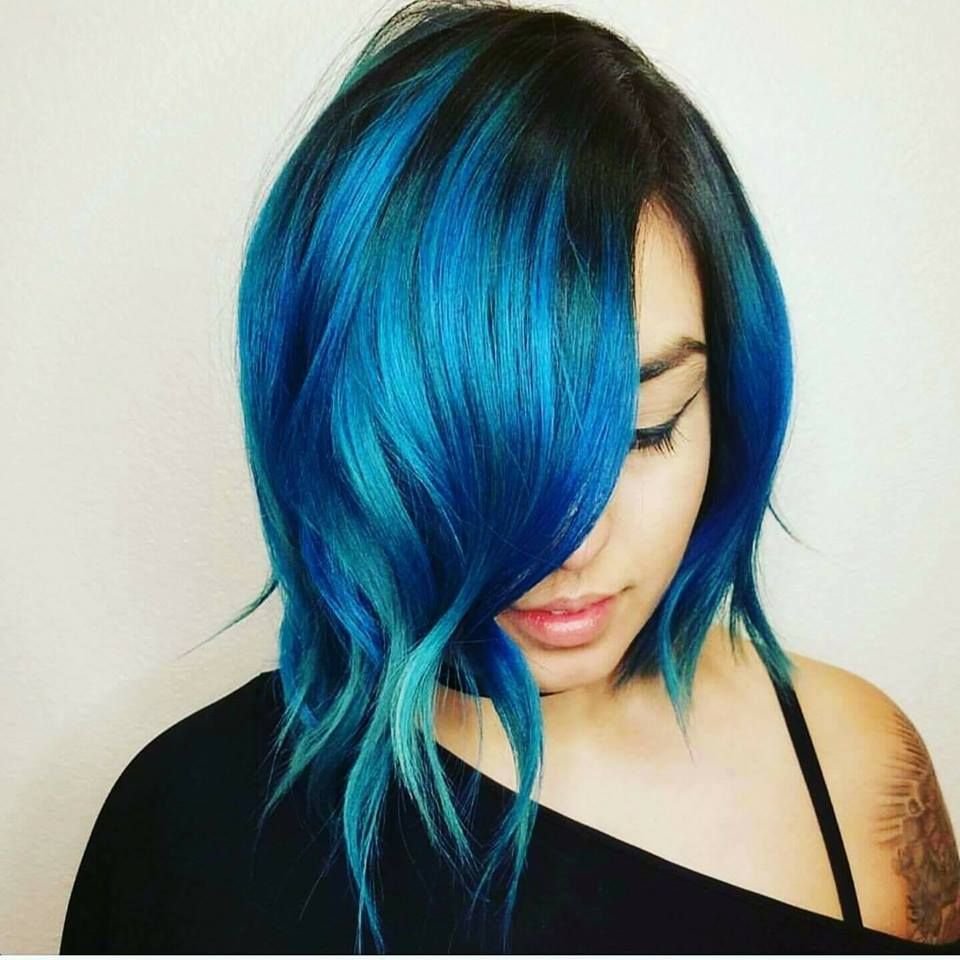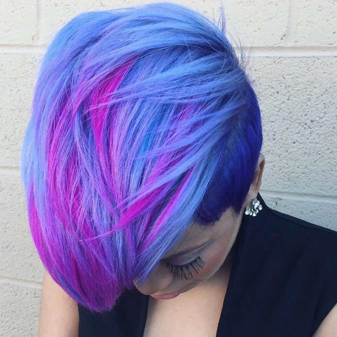 Синее окрашивание на короткие волосы