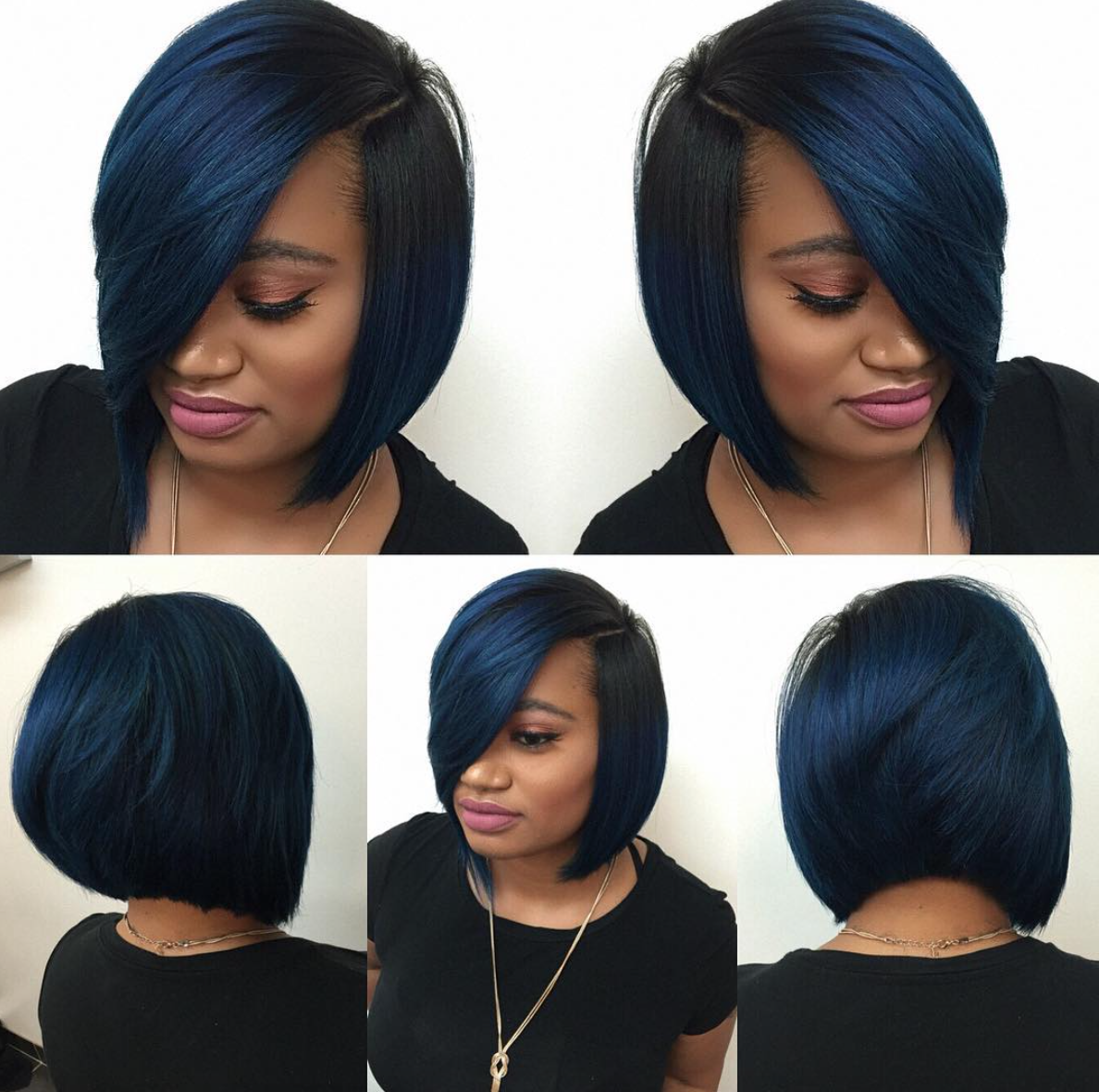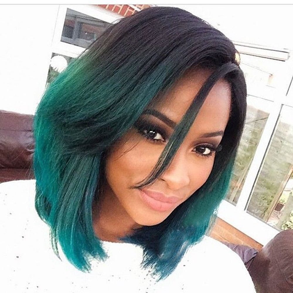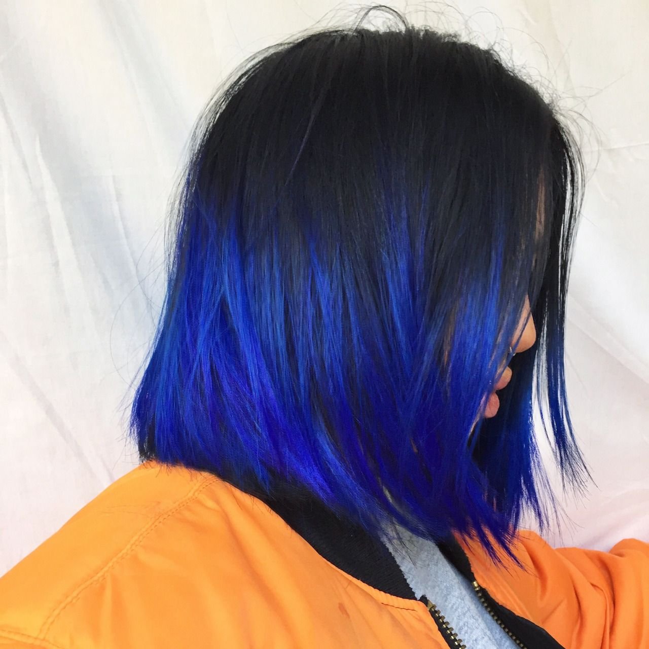 Синее омбре на черные волосы каре