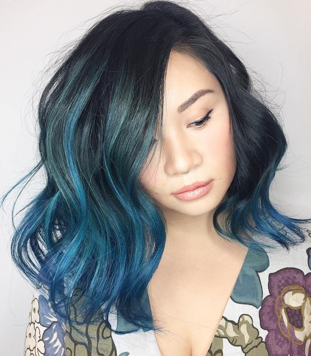 Синие мелирование на черные волосы