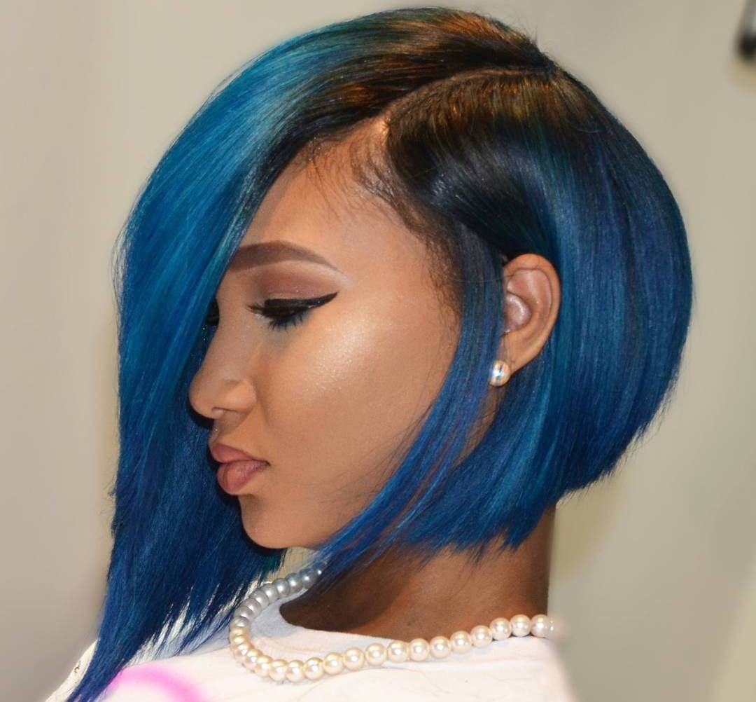 Короткая стрижка Боб с синим оттенком