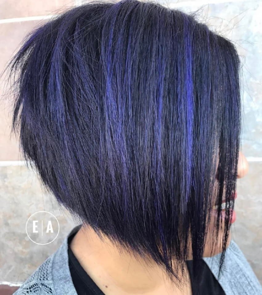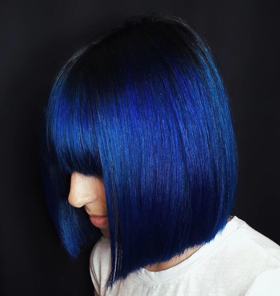 Черно синие волосы каре