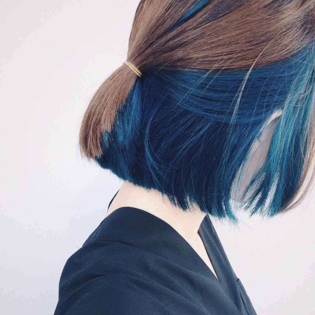 Синие кончики волос на коротких волосах