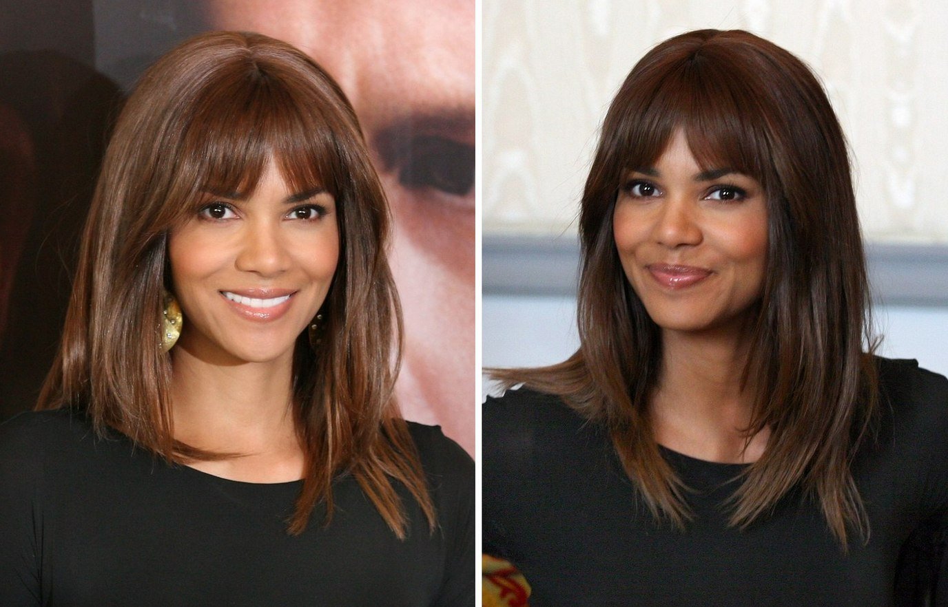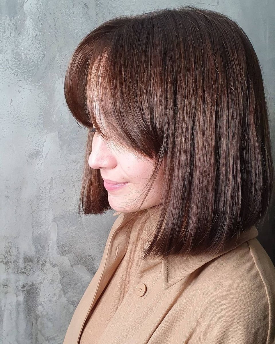 Шоколадный цвет волос с челкой