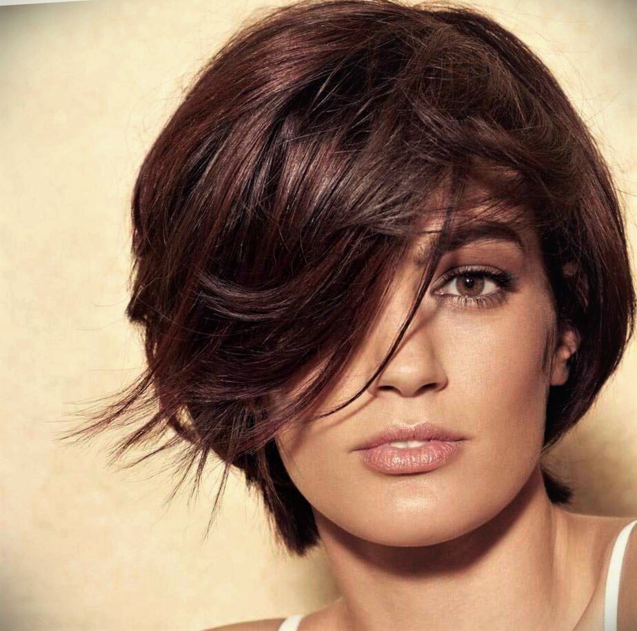Красивый шоколадный цвет волос на короткие волосы и челка