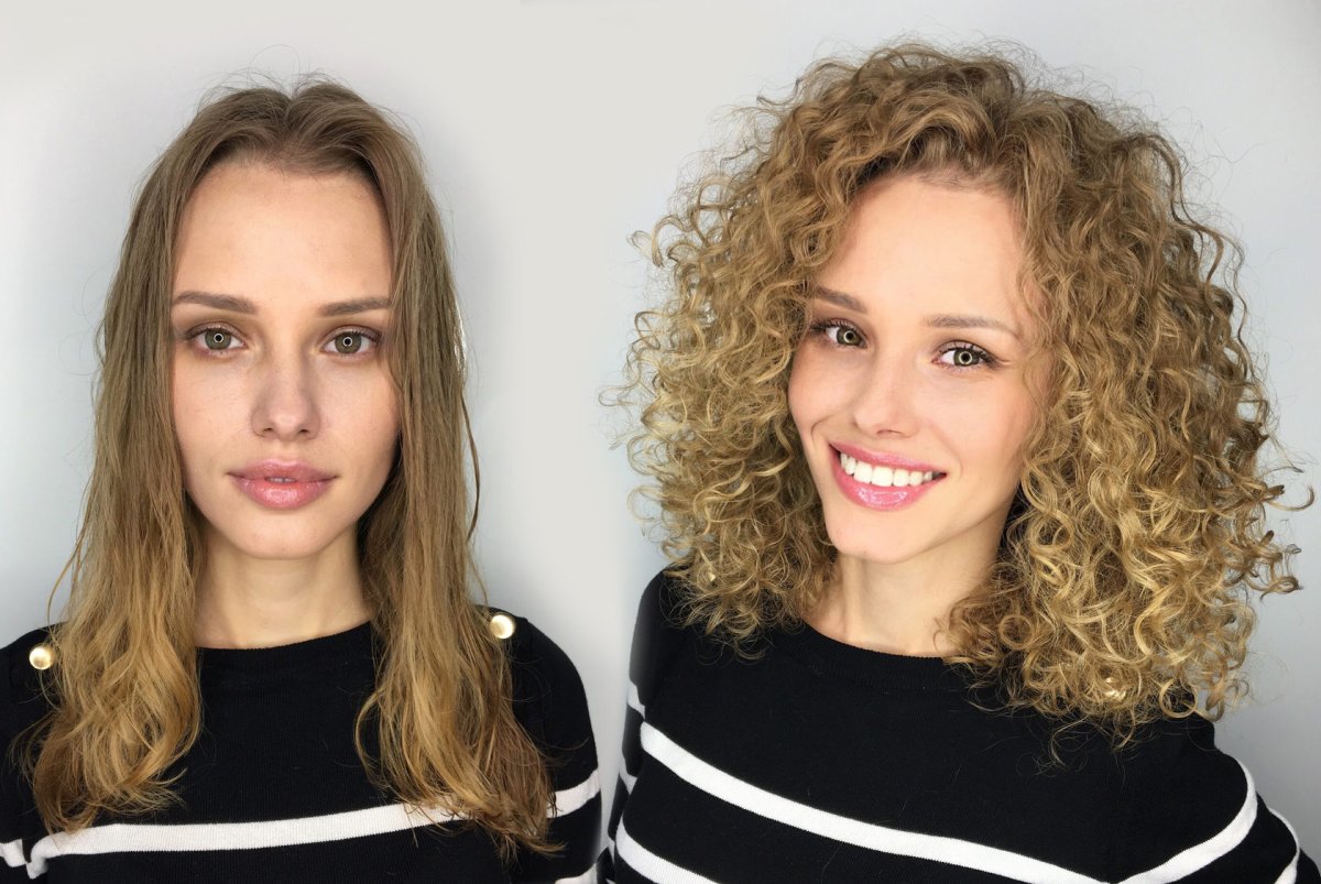 Биозавивка волос крупные Локоны на средние волосы до и после