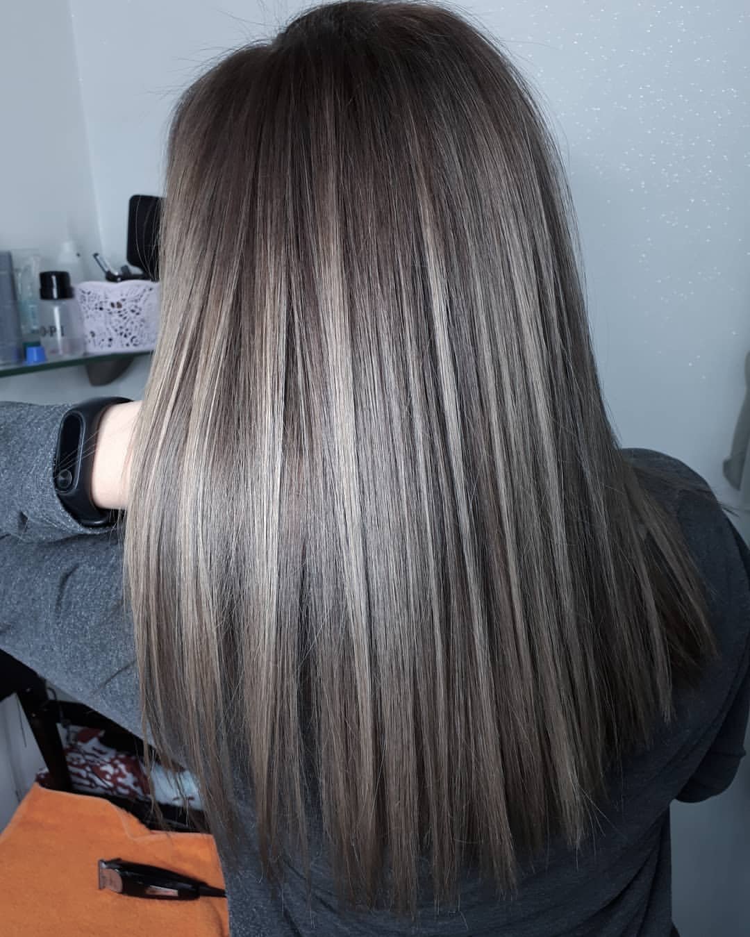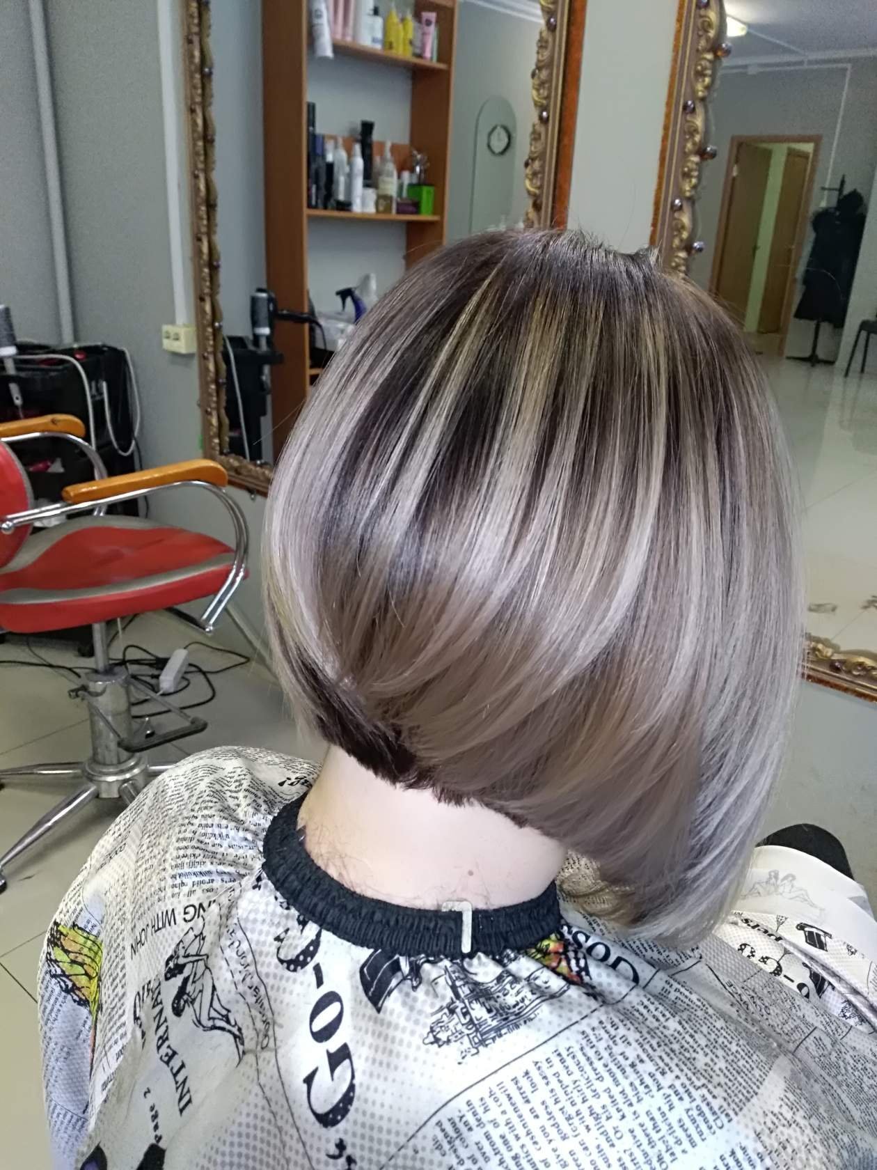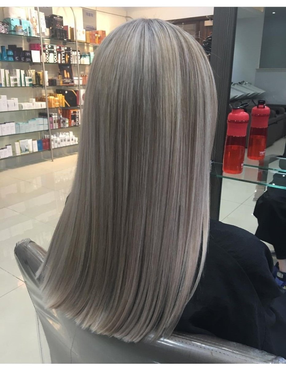 Пепельный цвет волос +белое мелирование