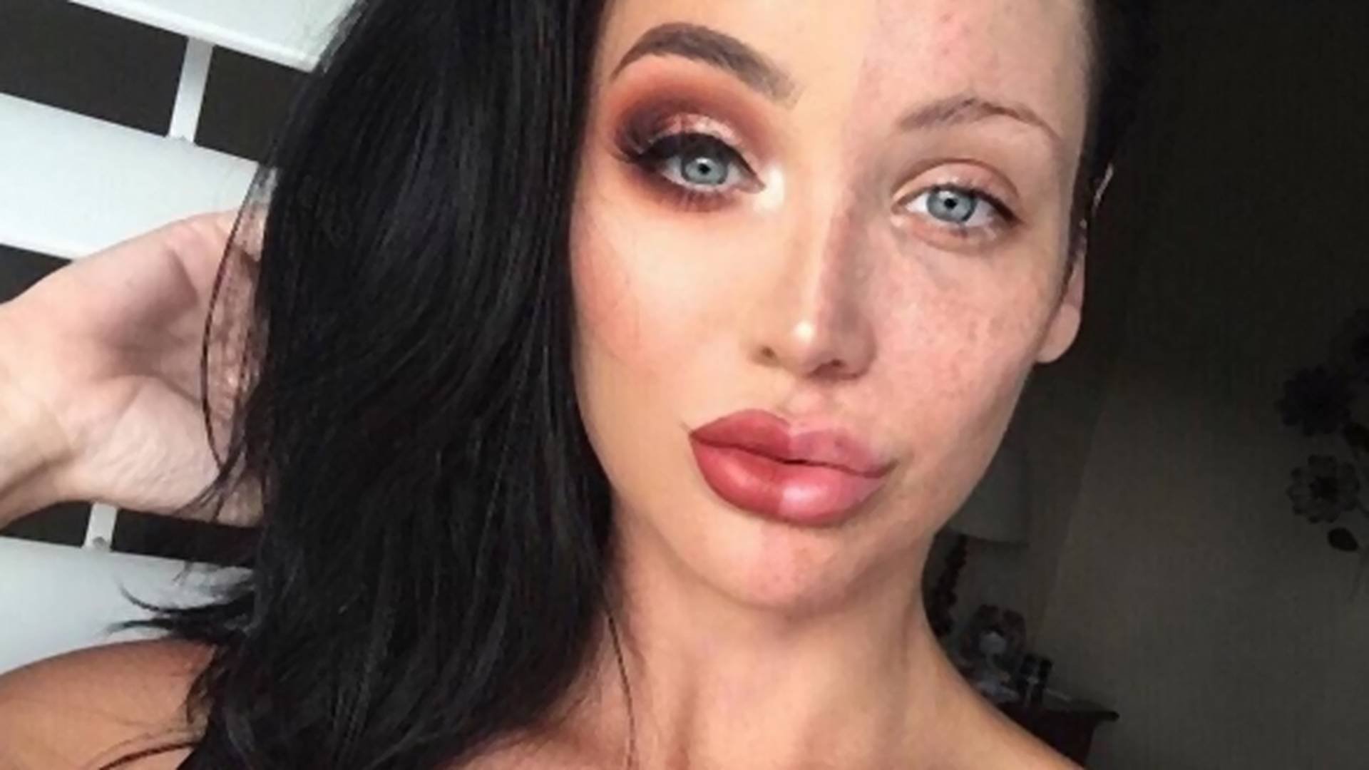 Много макияжа на девушке
