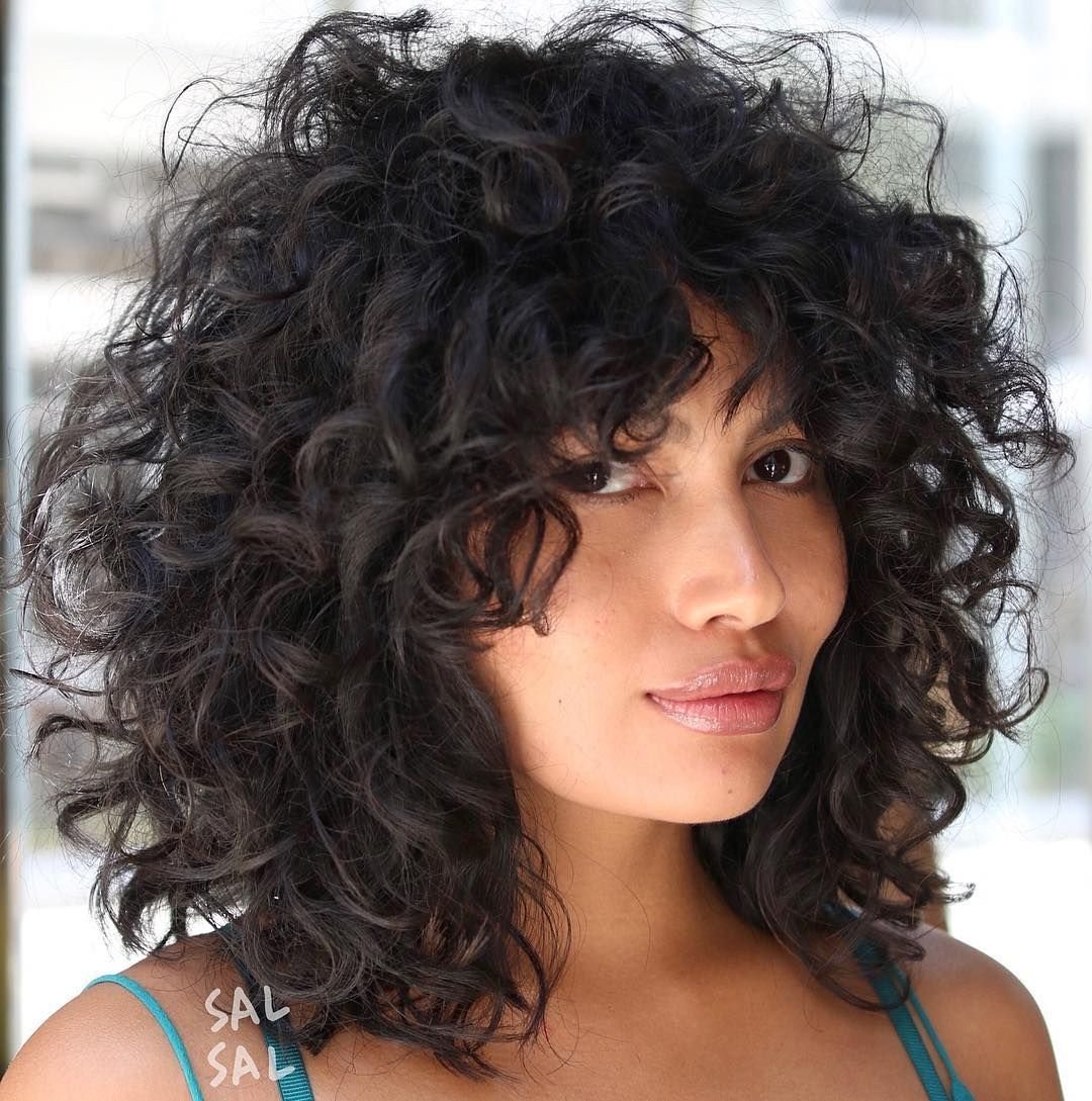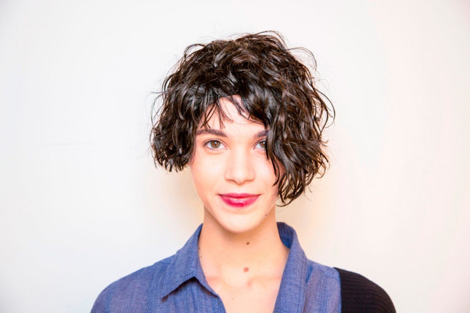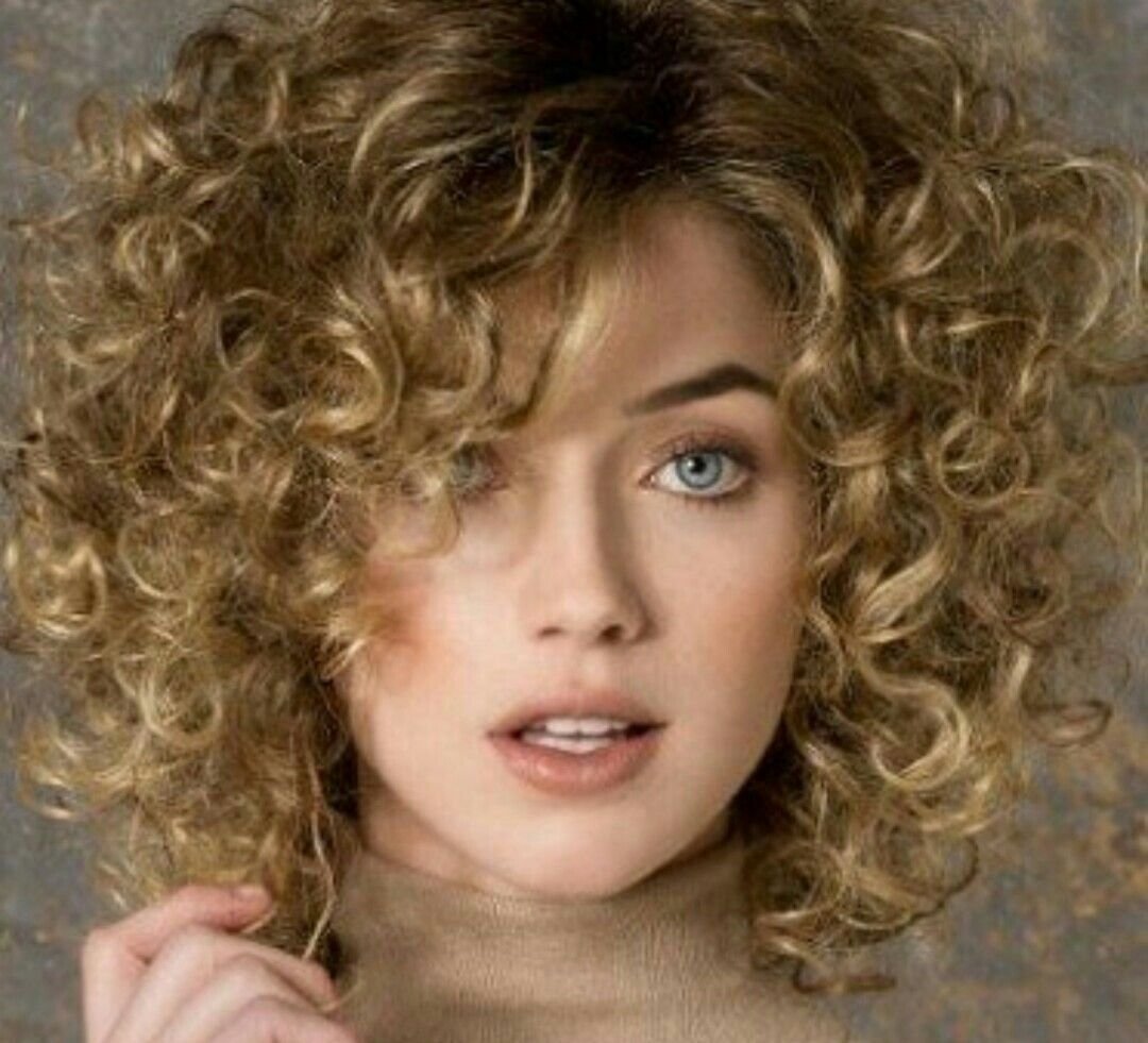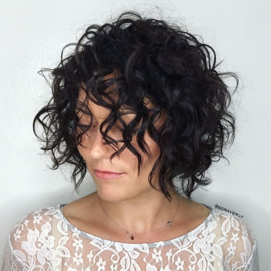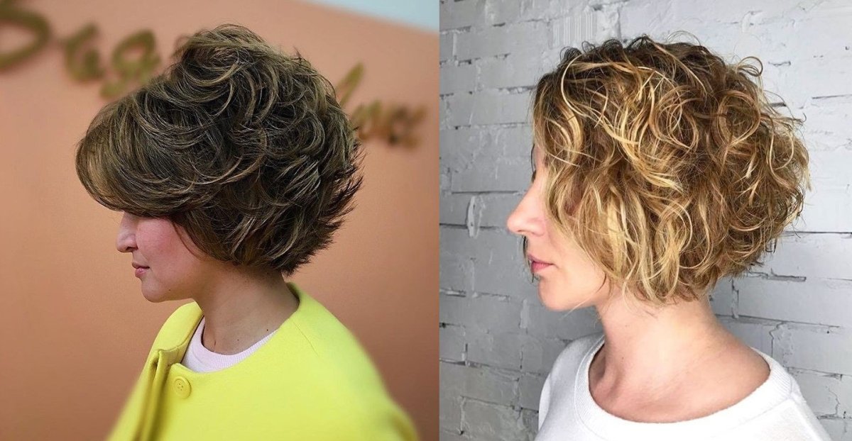 Стрижка градуированное каре на кудрявые волосы с челкой