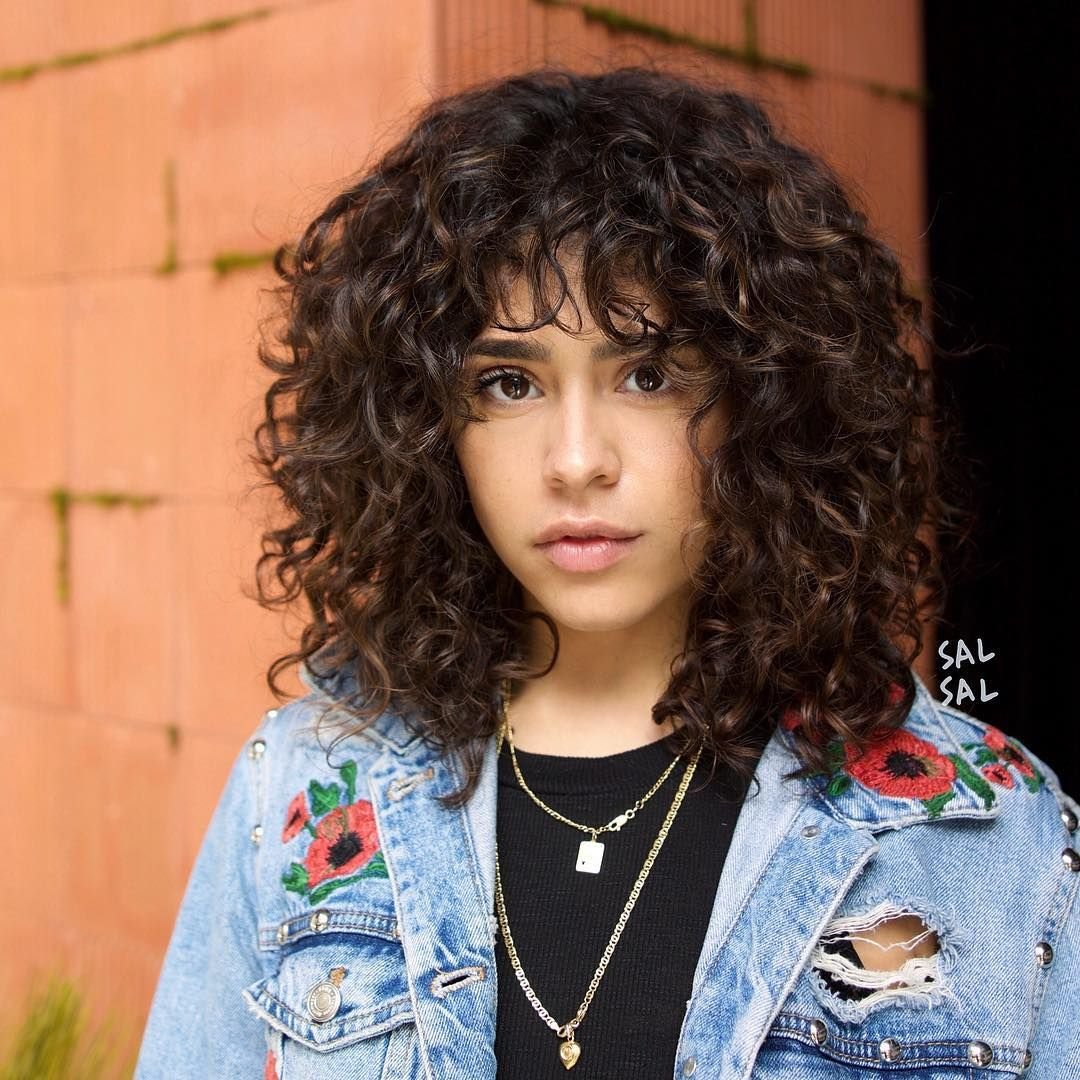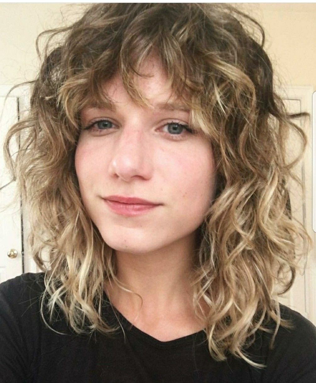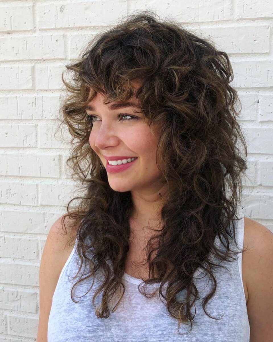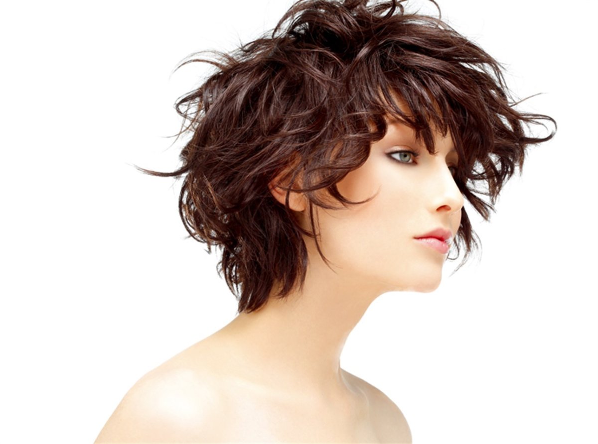 Стрижка градуированное каре на кудрявые волосы с челкой