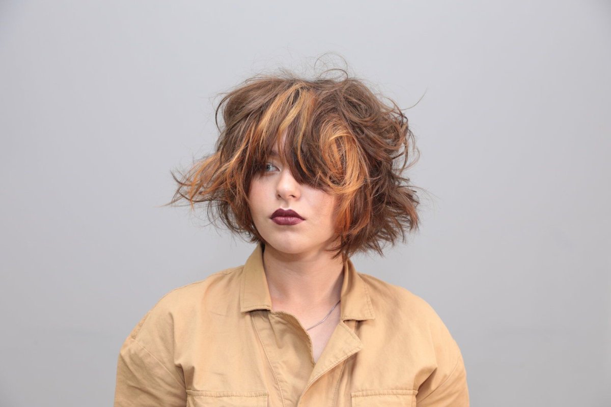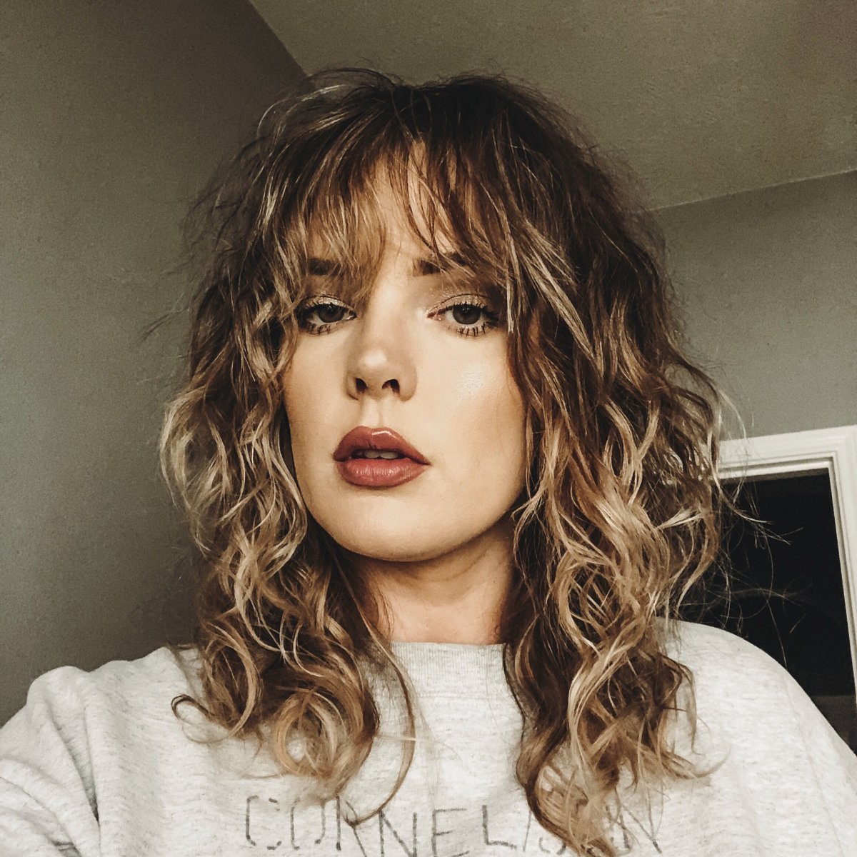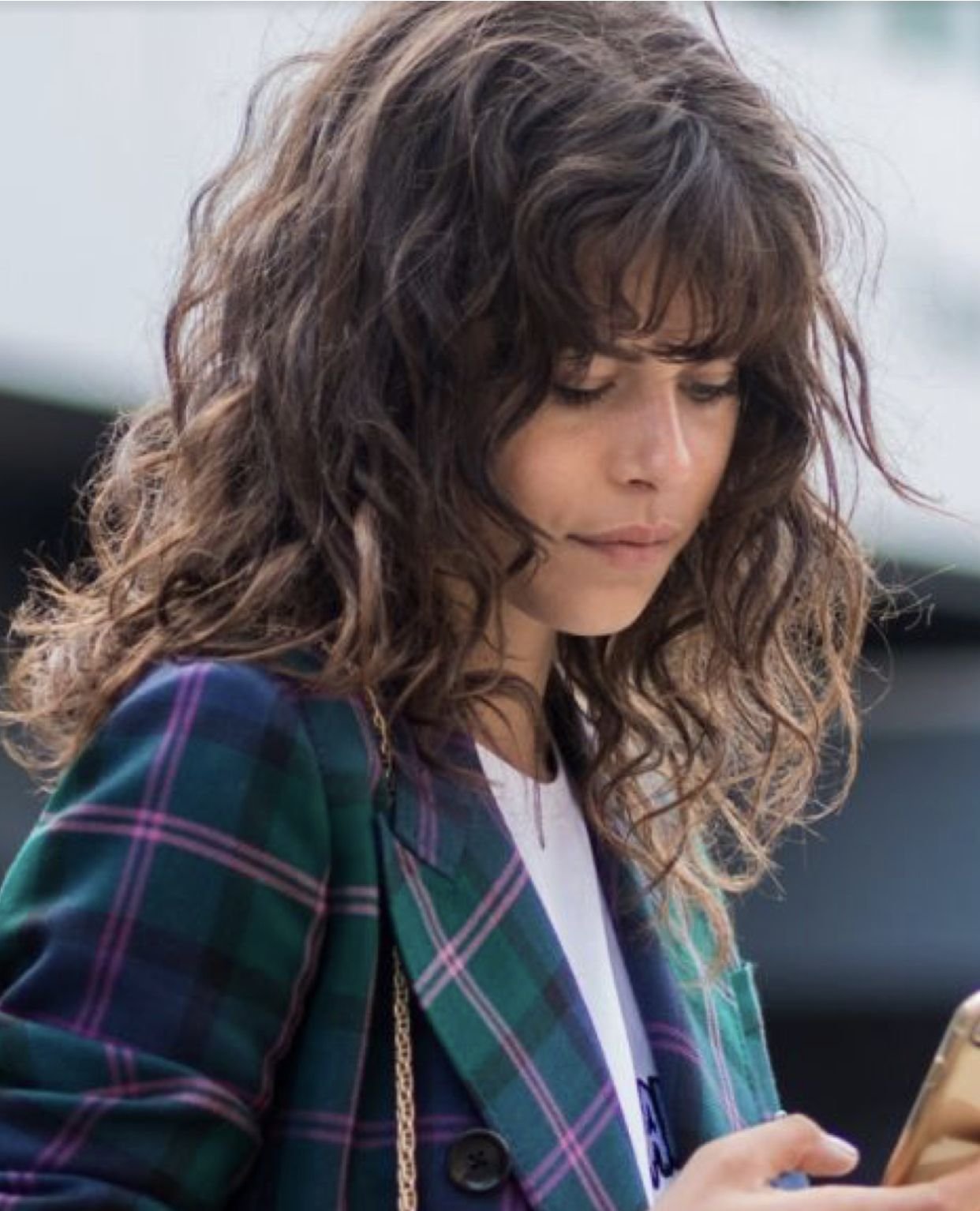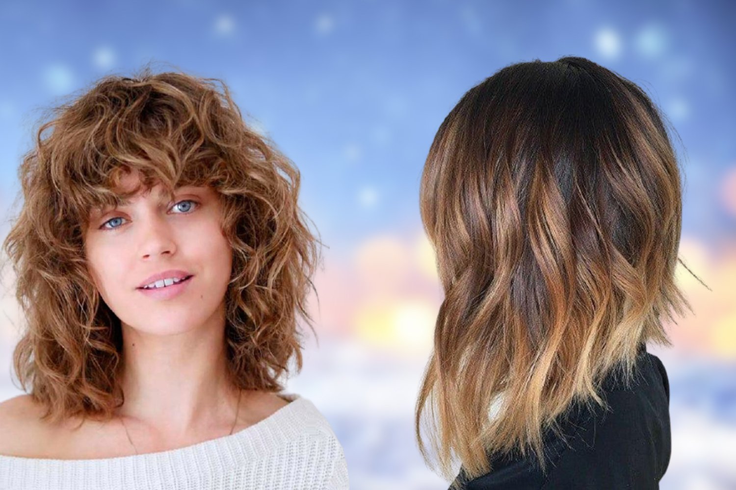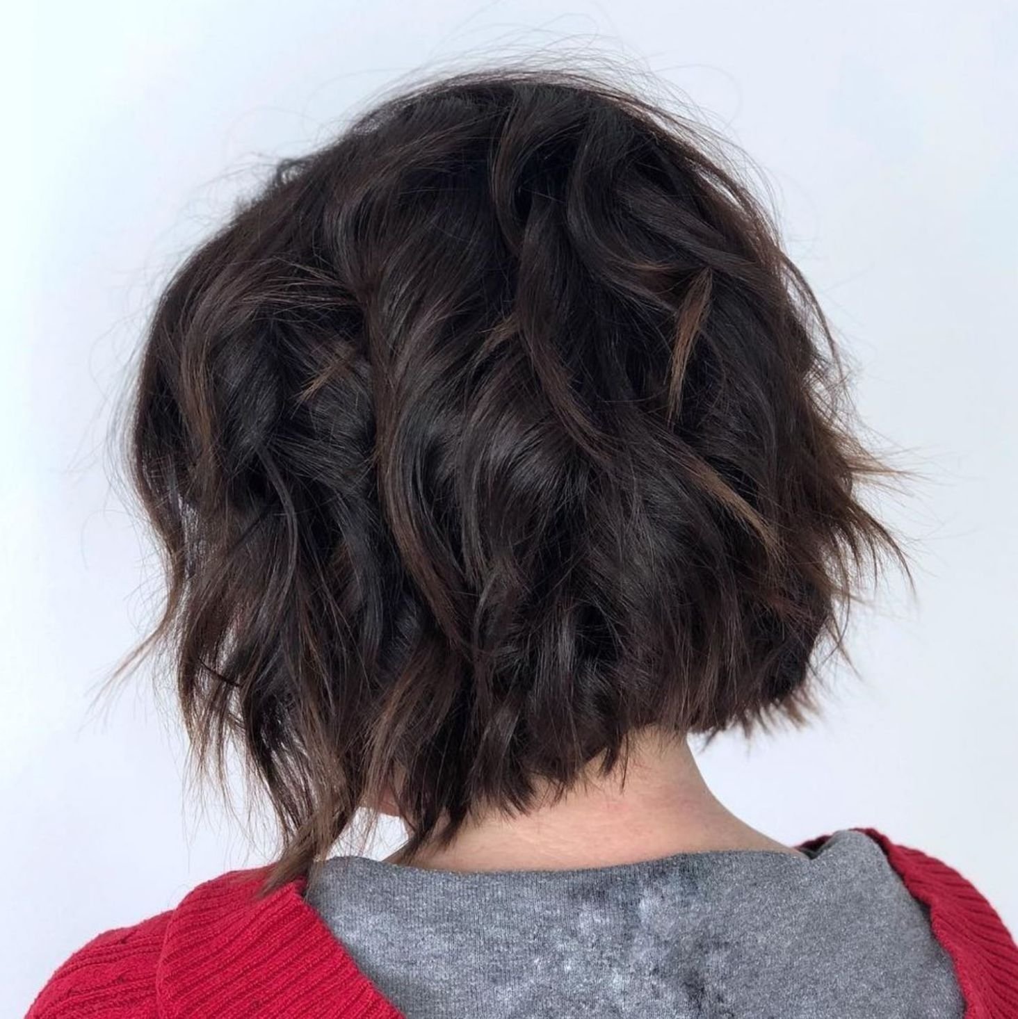 Градуированный Боб на средние волосы с челкой на волнистые волосы