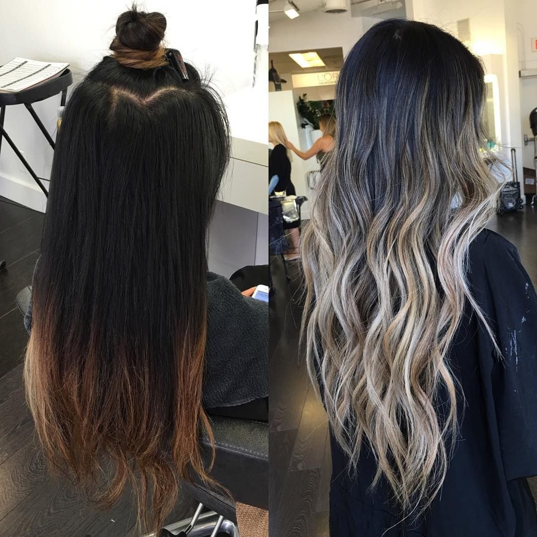 Омбре балаяж на черные волосы