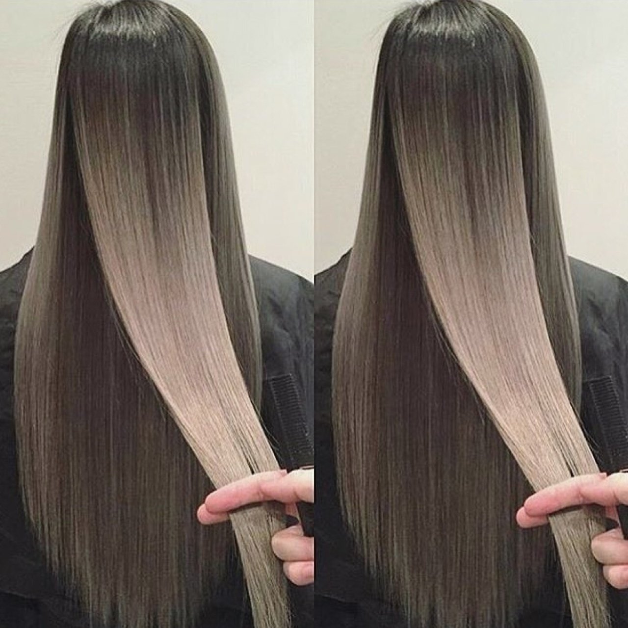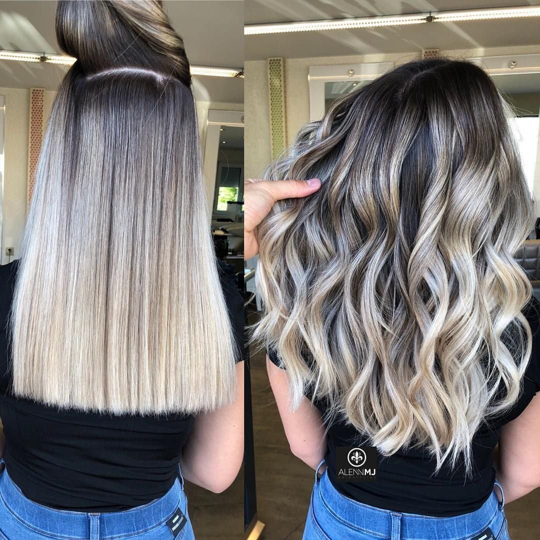 Наращивание омбре пепел волос