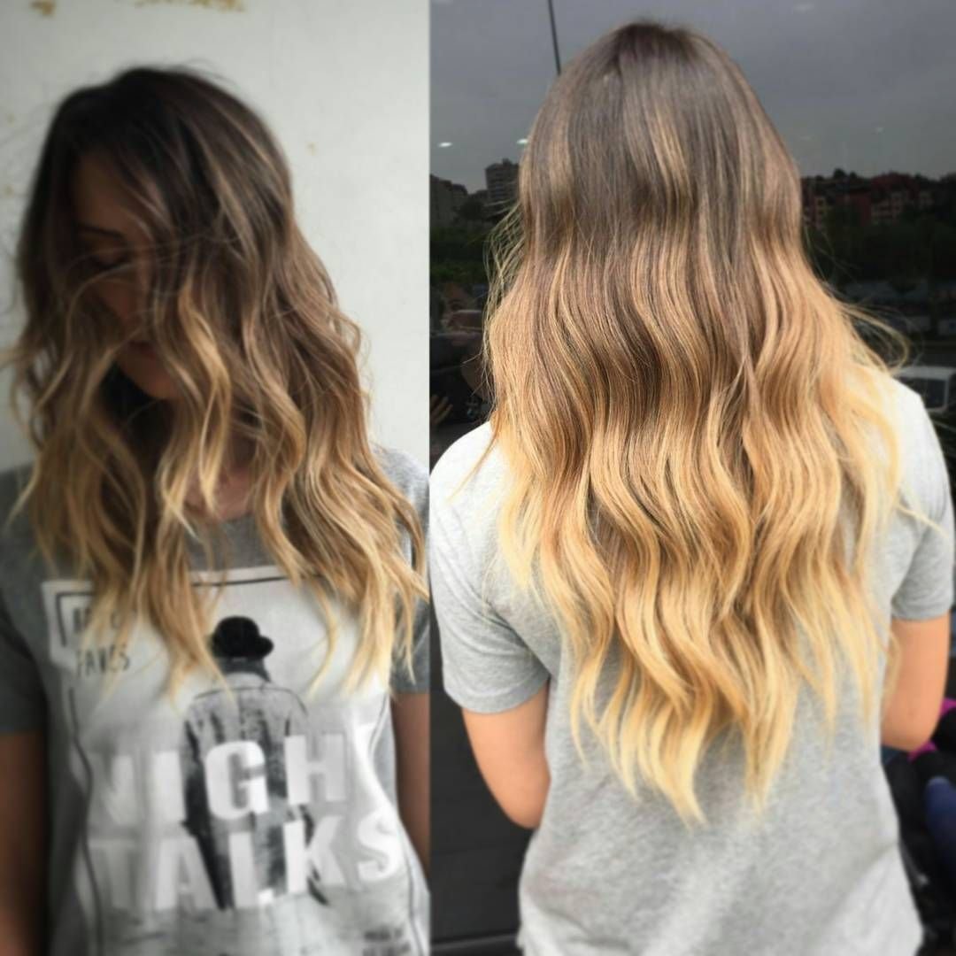 Нарощенные волосы омбре на русые волосы
