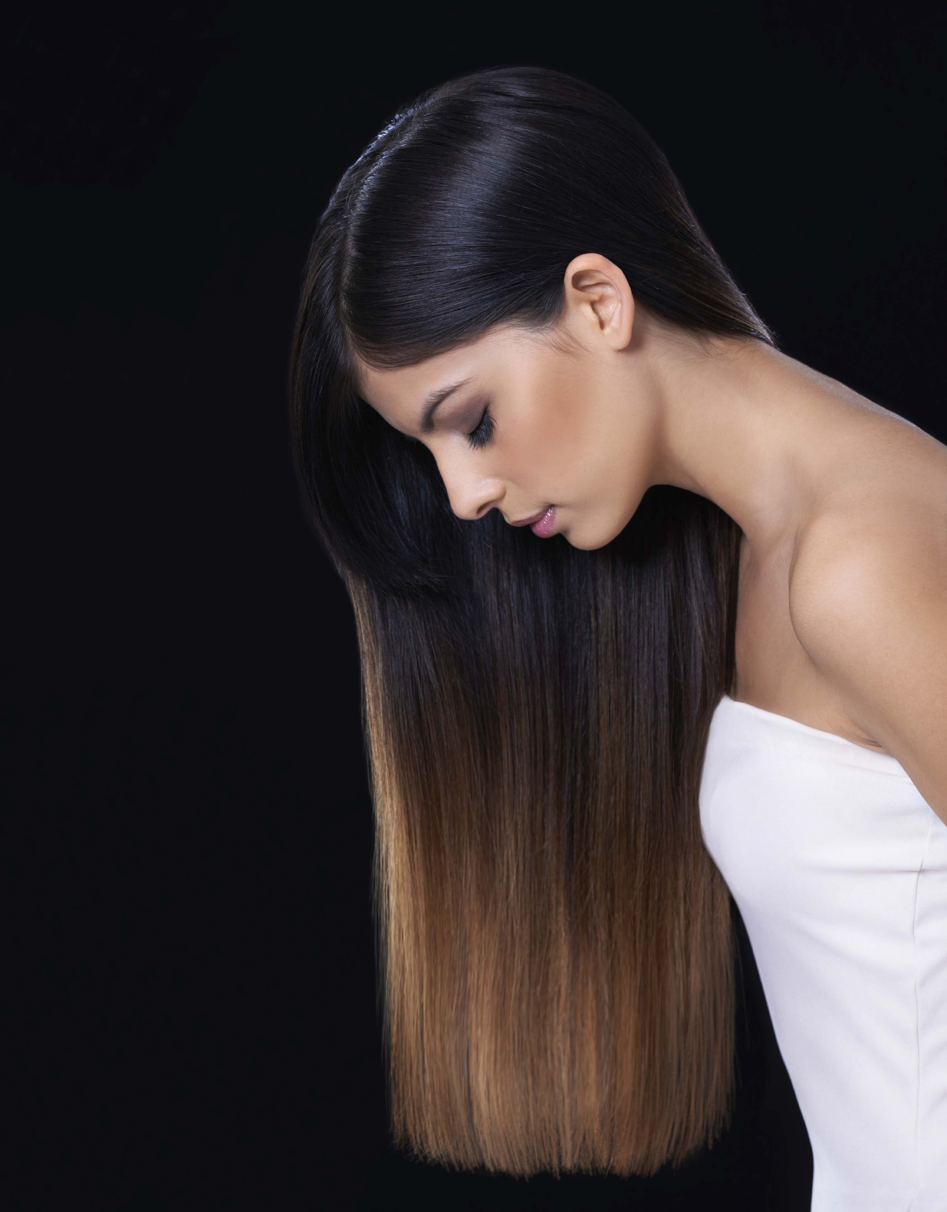 Омбре на черные волосы длинные прямые