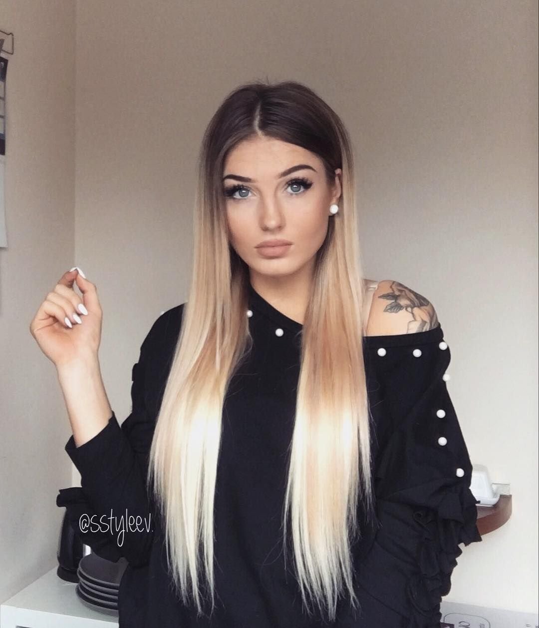 Омбре блонд с темными корнями