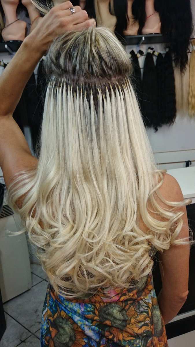 Нарощенные волосы омбре блонд