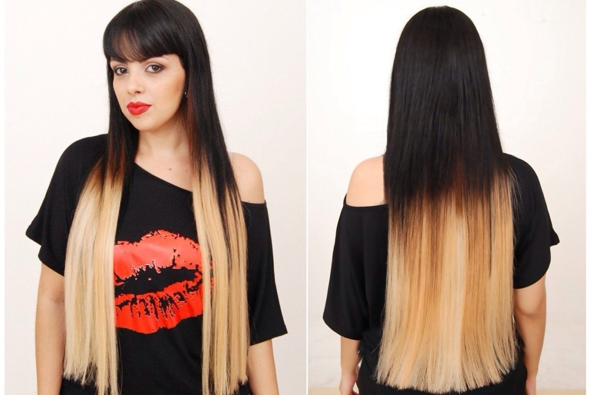 Нарощенные волосы омбре на темные волосы