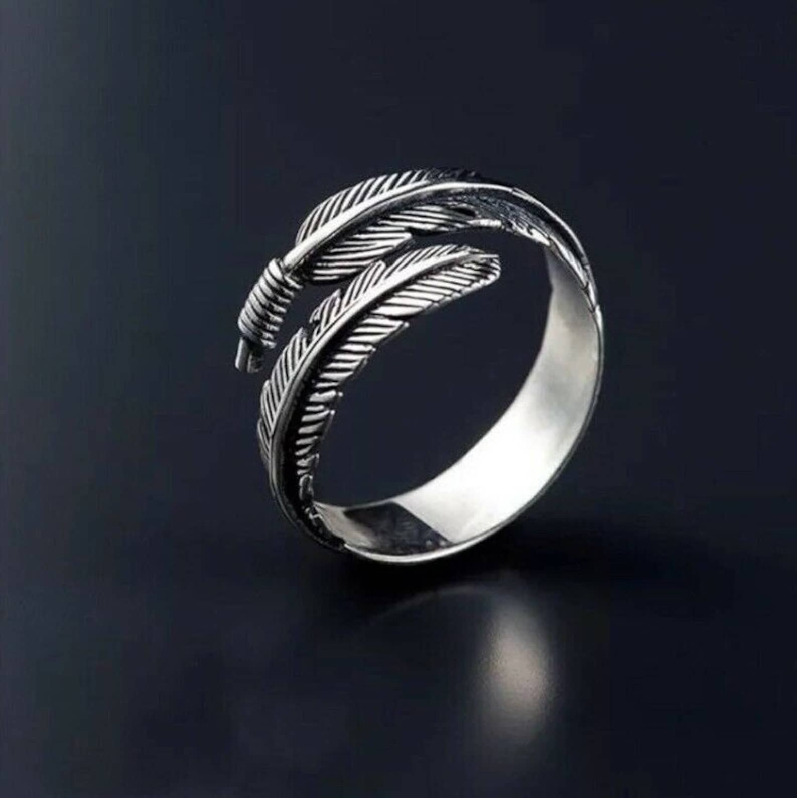 Безразмерное кольцо перо серебро