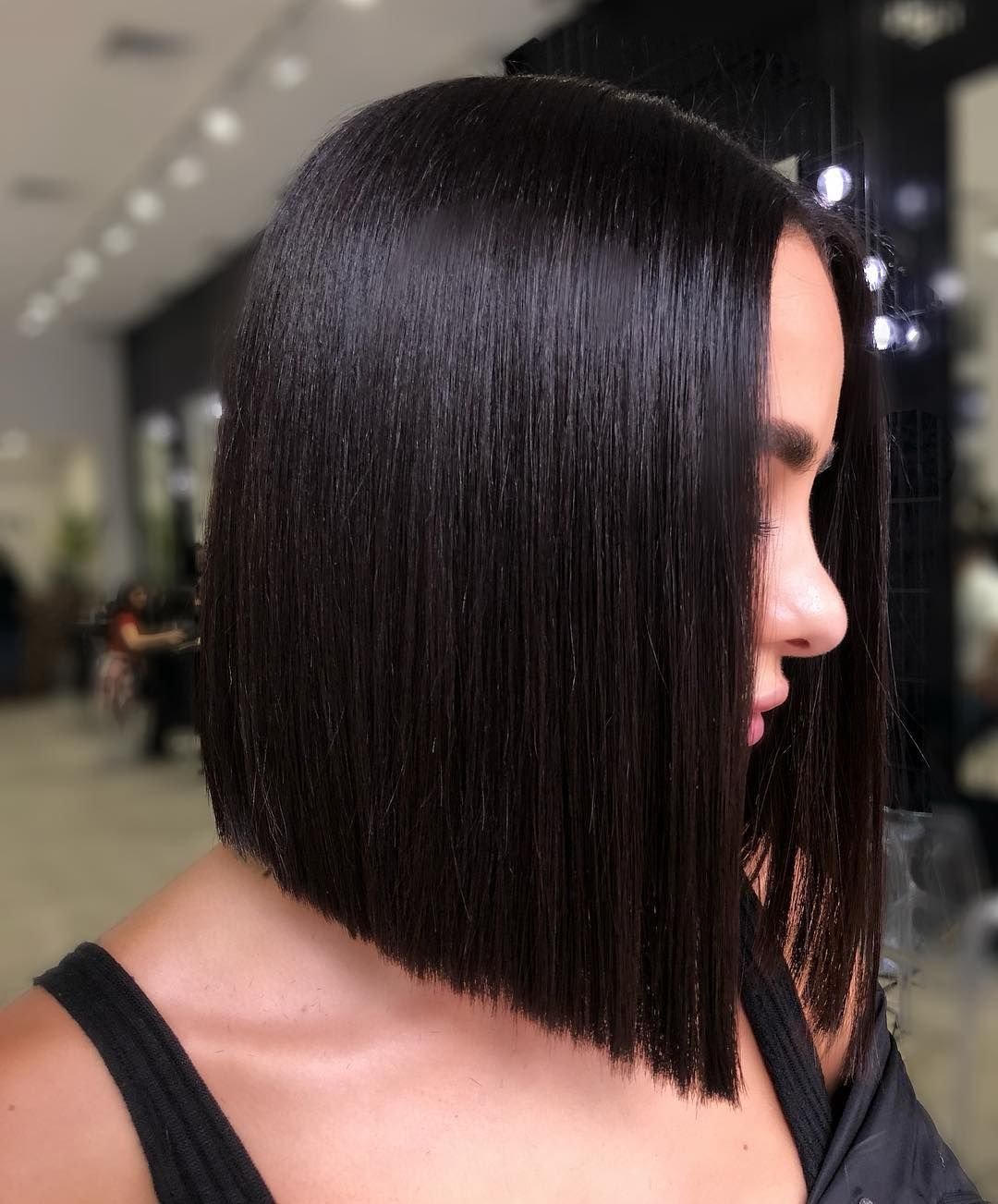 Каре-Боб с удлиненными передними прядями для круглого лица