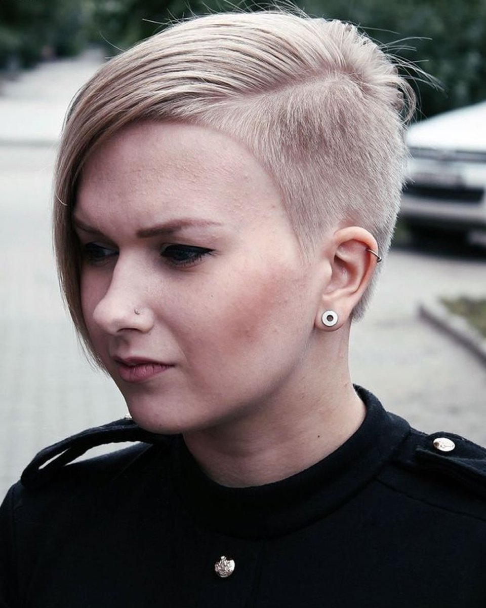 Короткие женские стрижки на светлые волосы с выбритыми висками