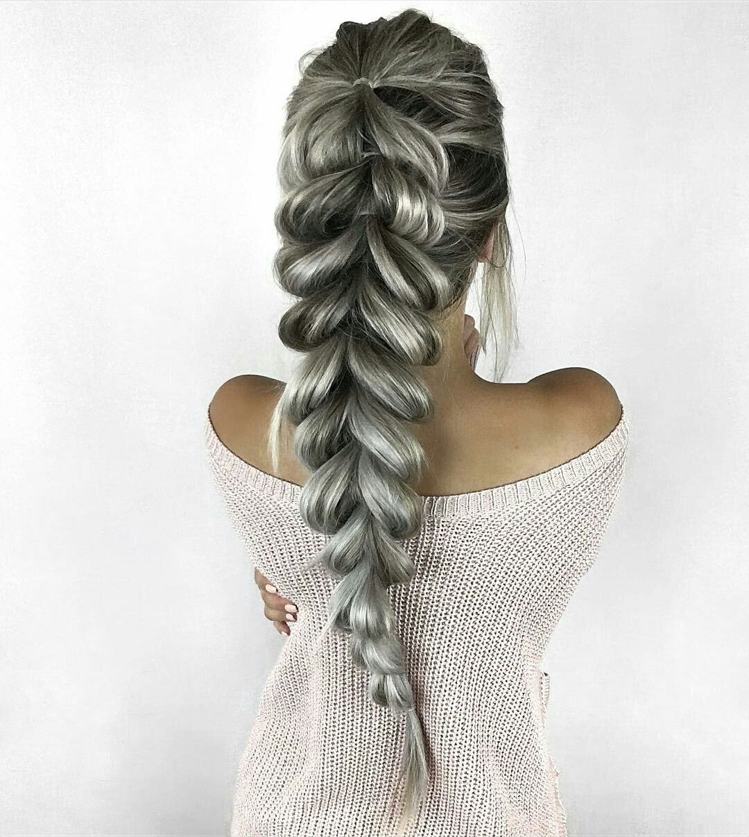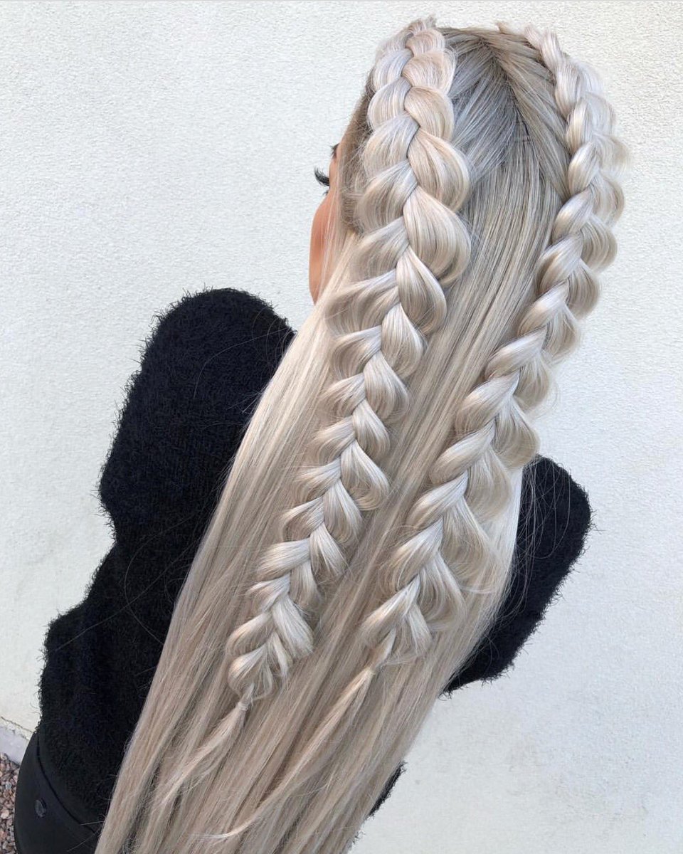Вывернутые косички на длинные волосы