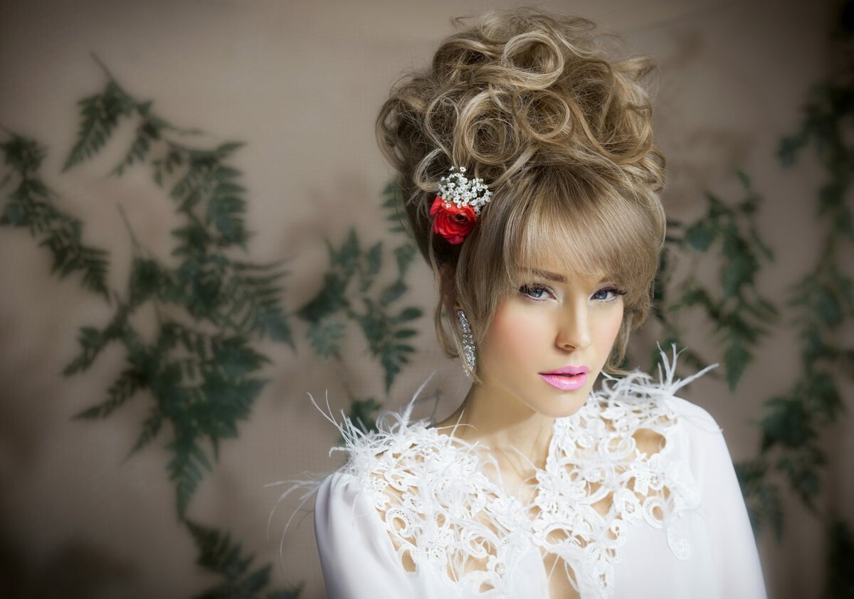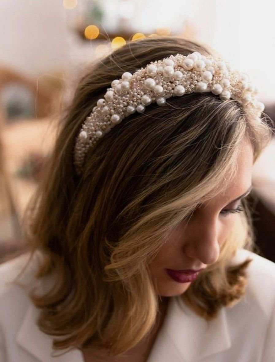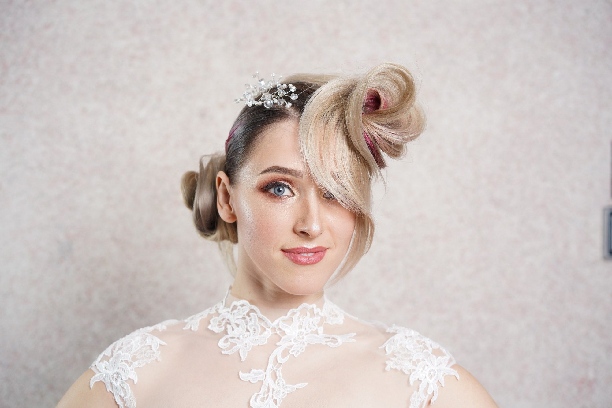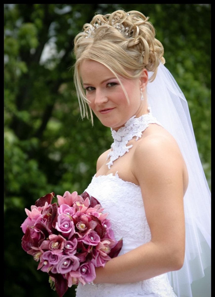 Причёски на свадьбу на средние волосы для невесты без фаты с челкой