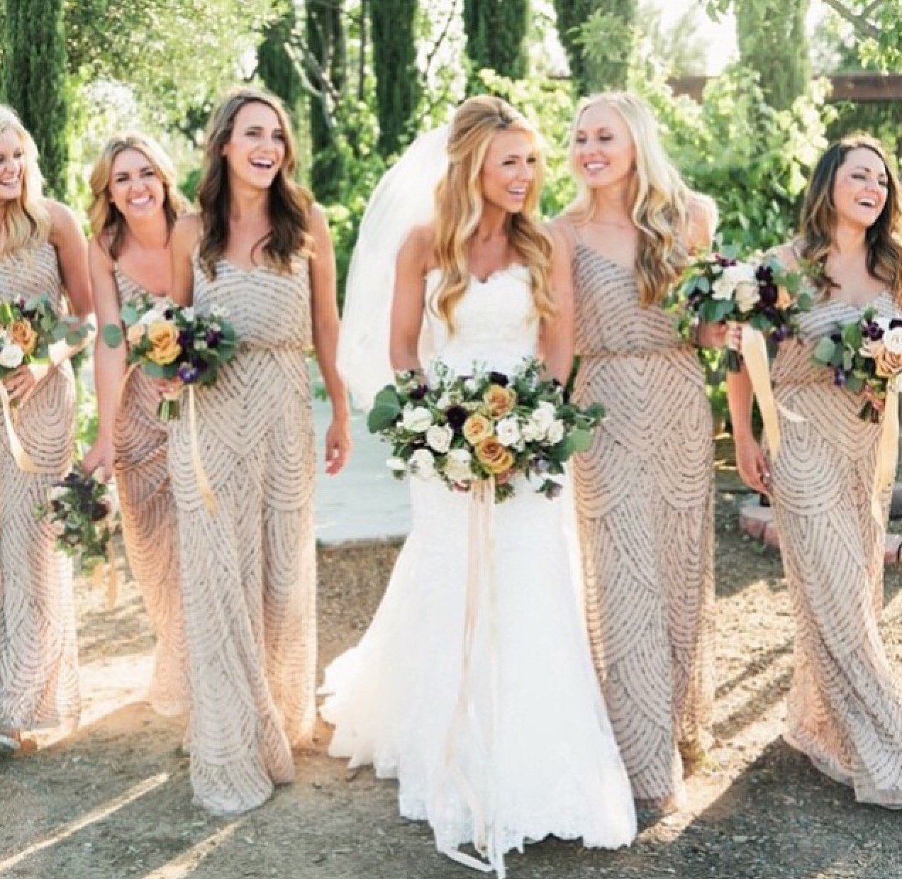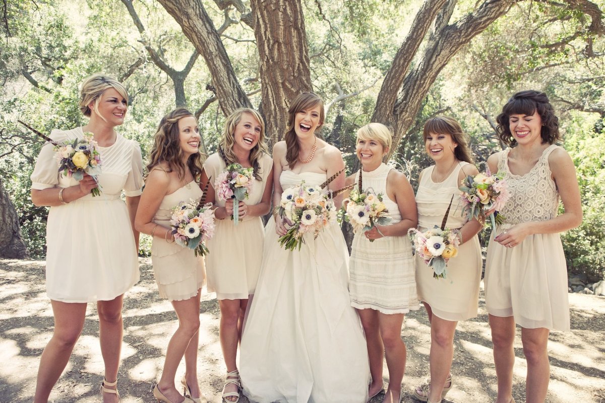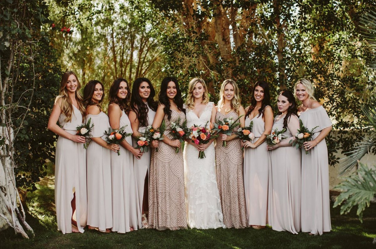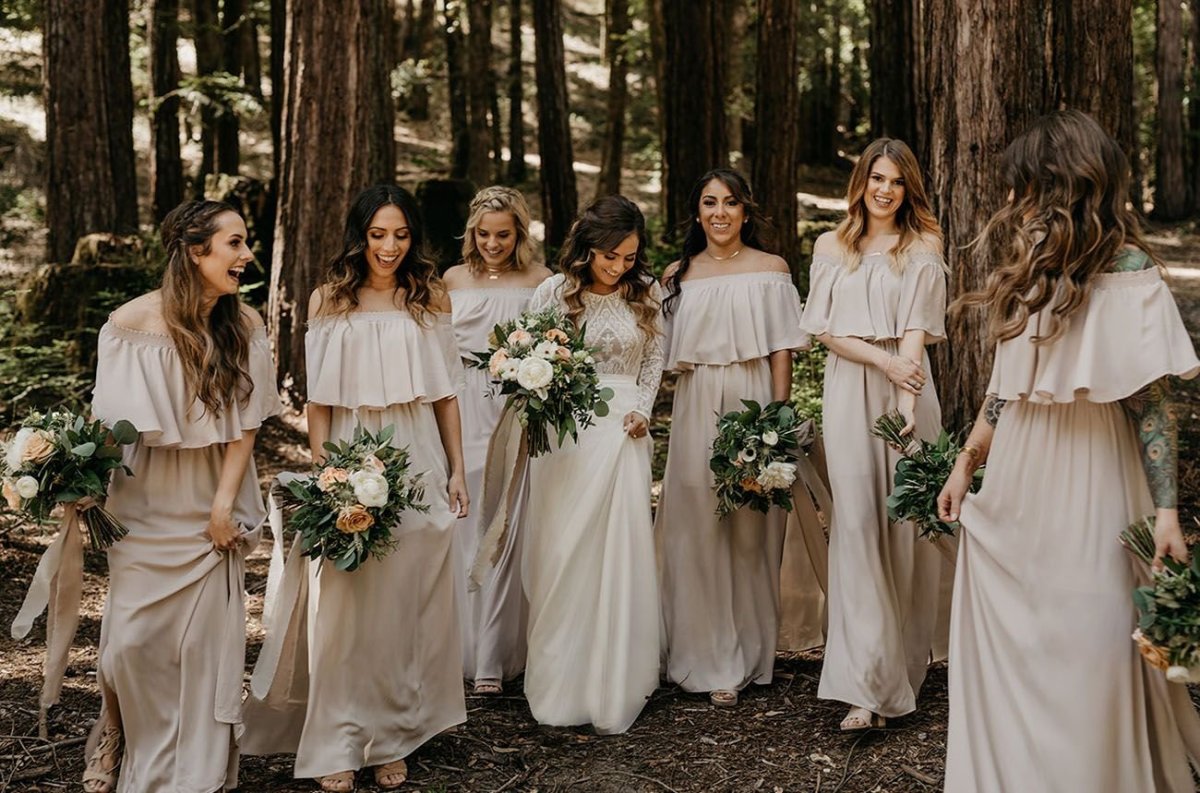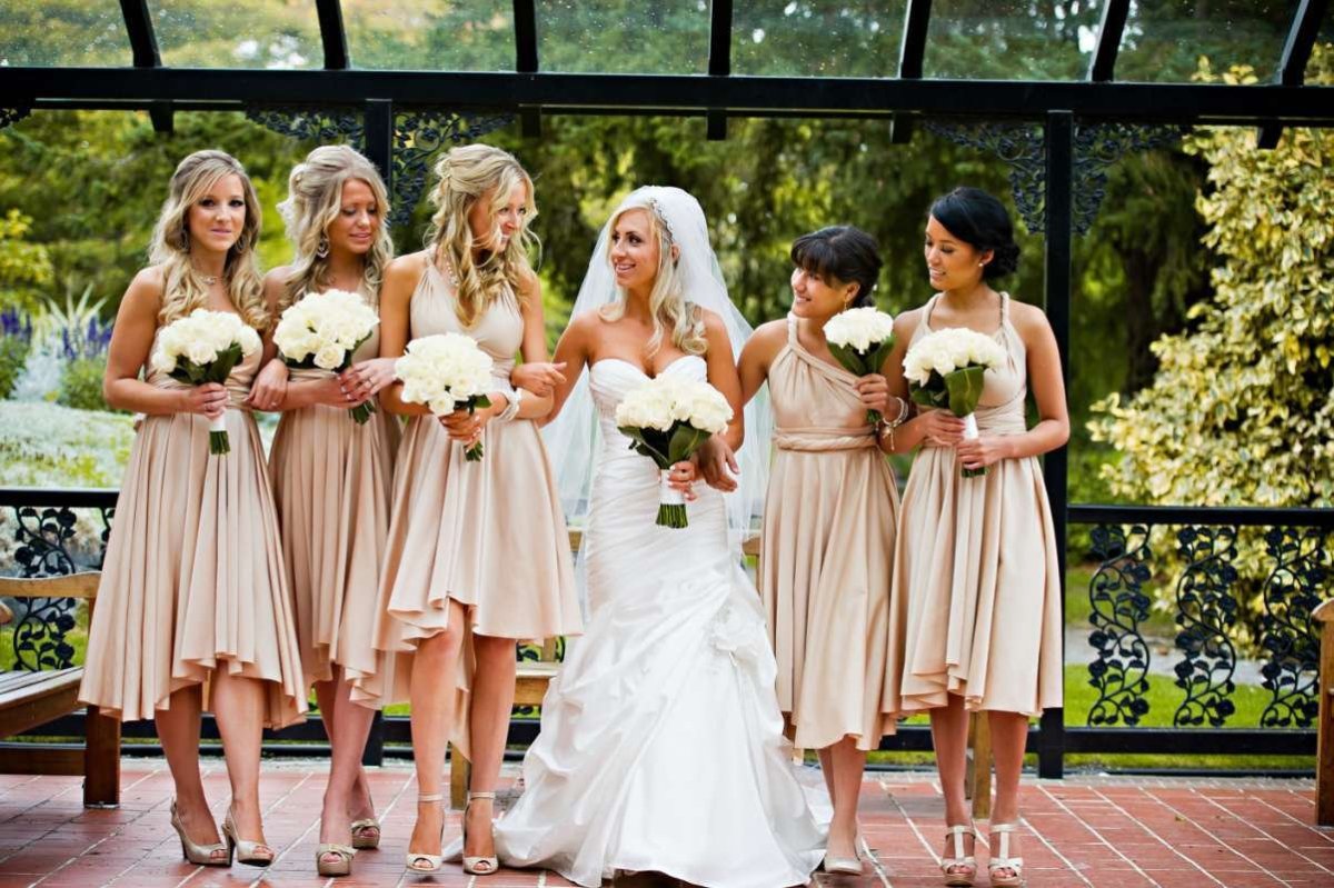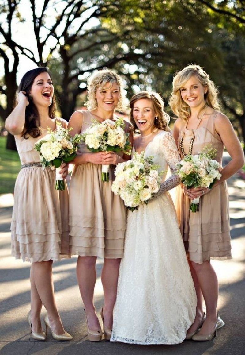 Подружки невесты в бежевых платьях