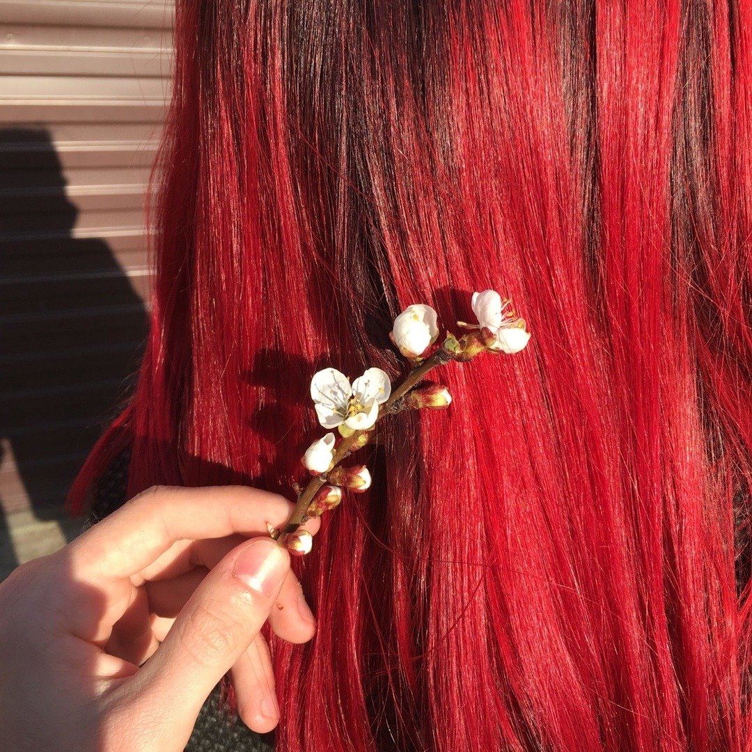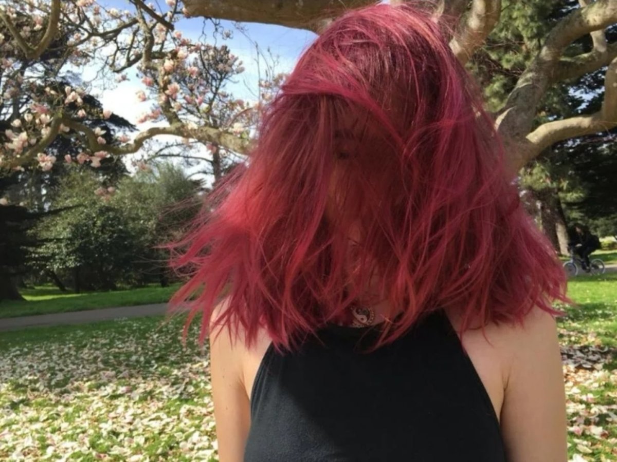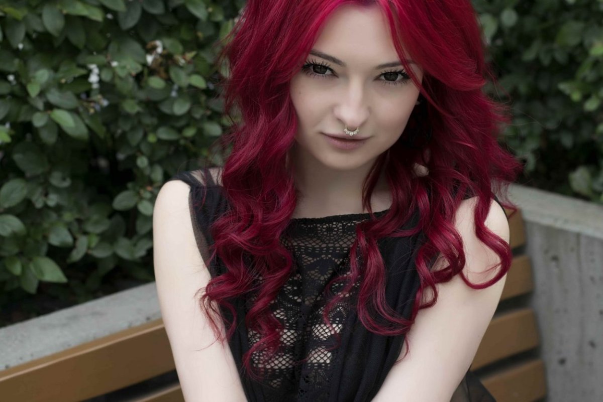 Девушка с бледной кожей, красными волосами, и мешками под глазами