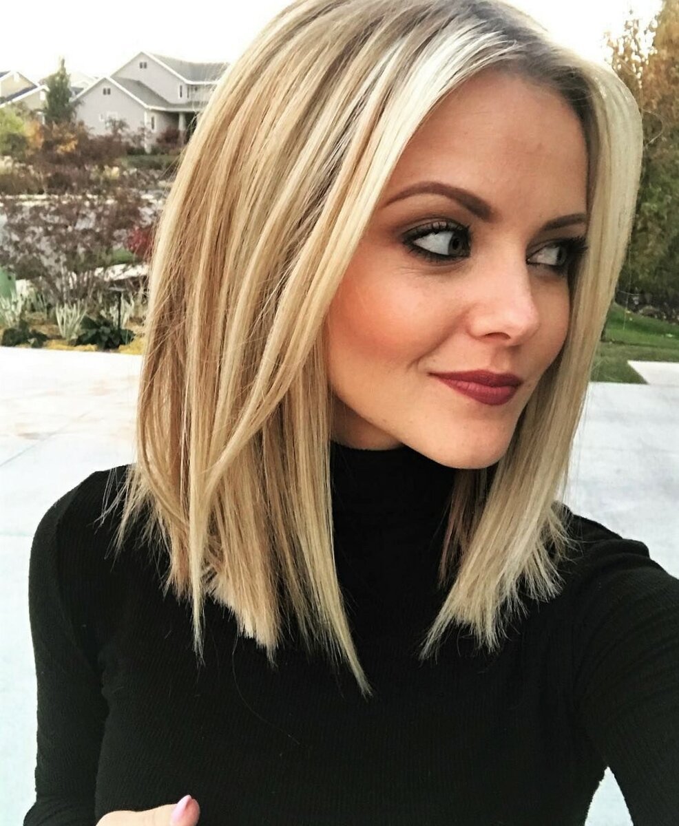 Стрижка ровный срез на средние волосы негустые волосы с челкой
