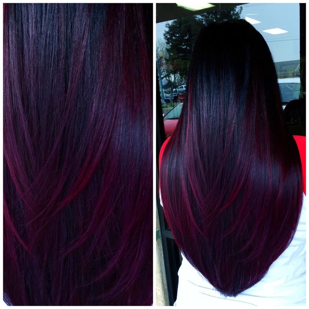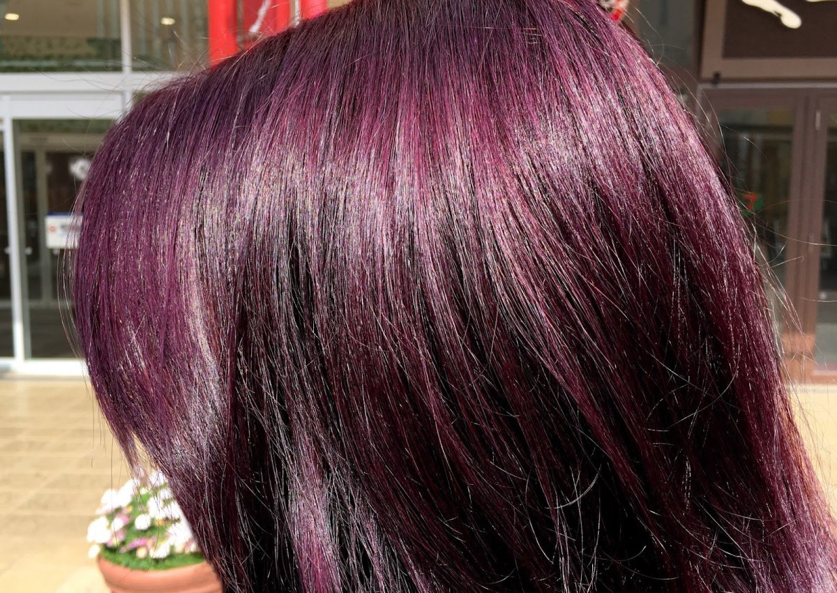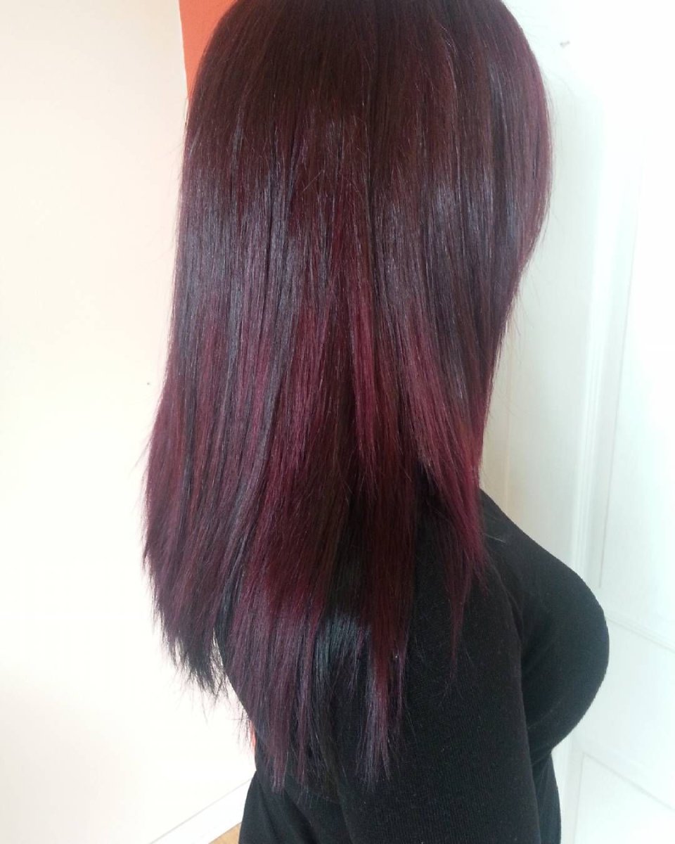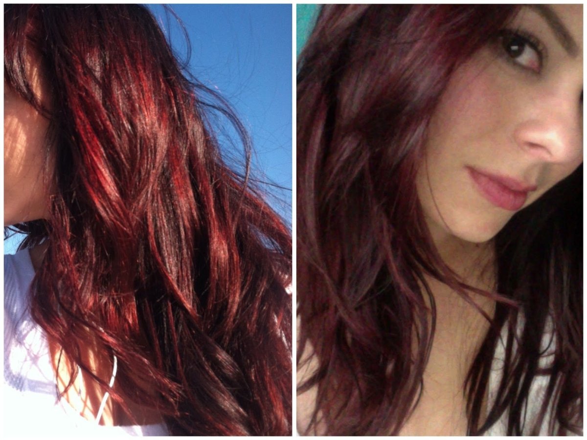 Окрашивание темных волос в гранатовый
