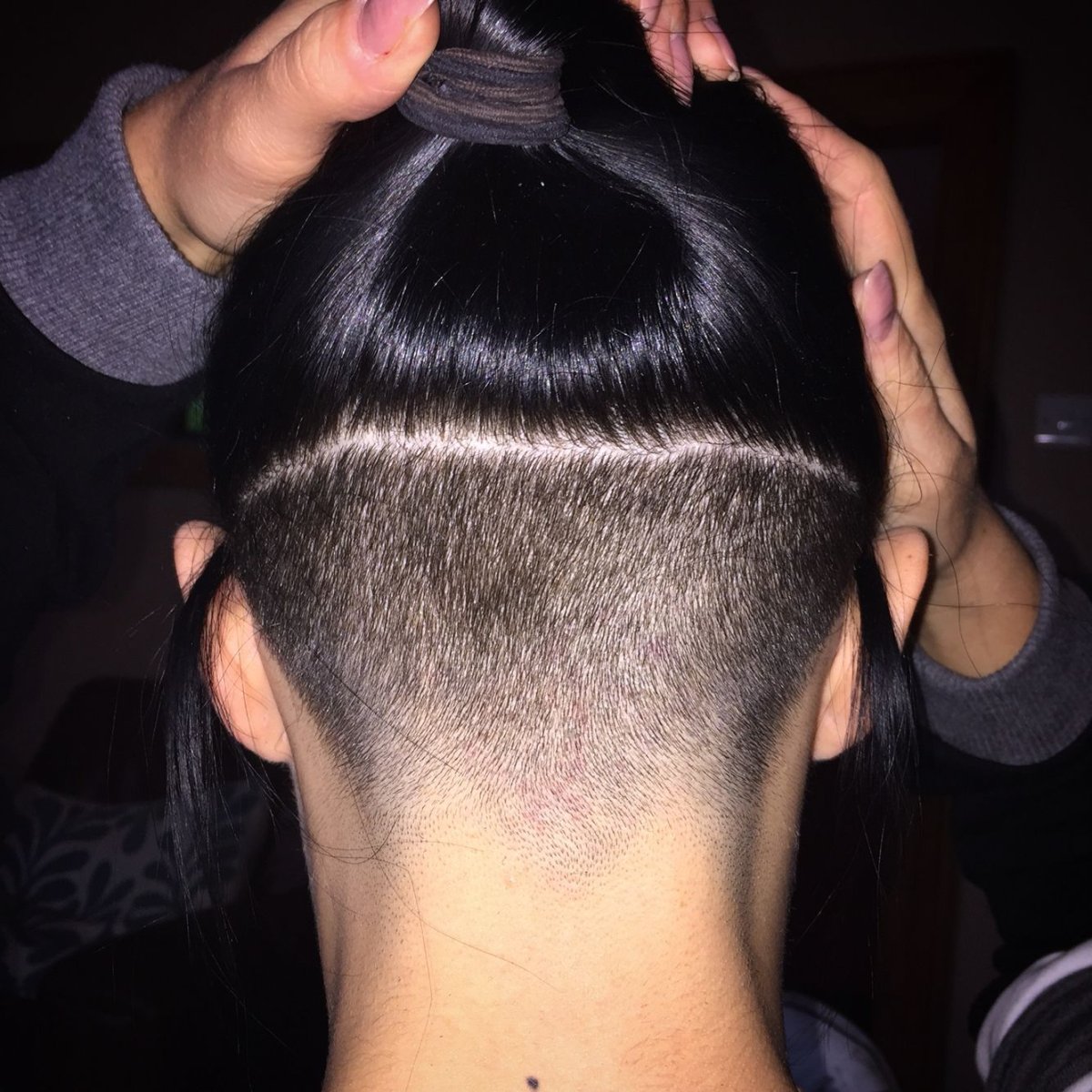 Бритый затылок на длинные волосы