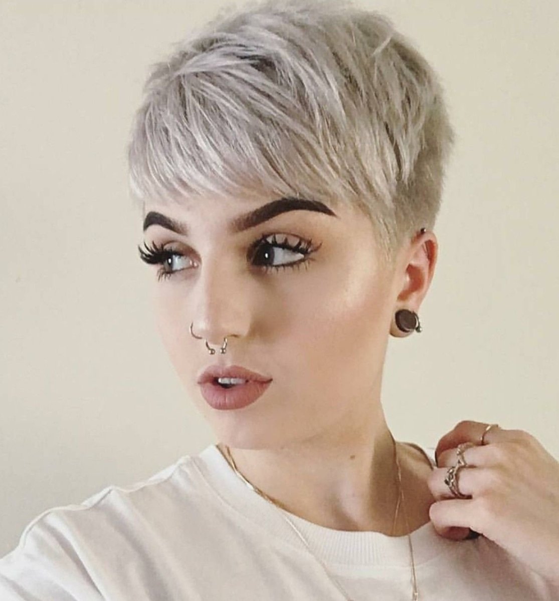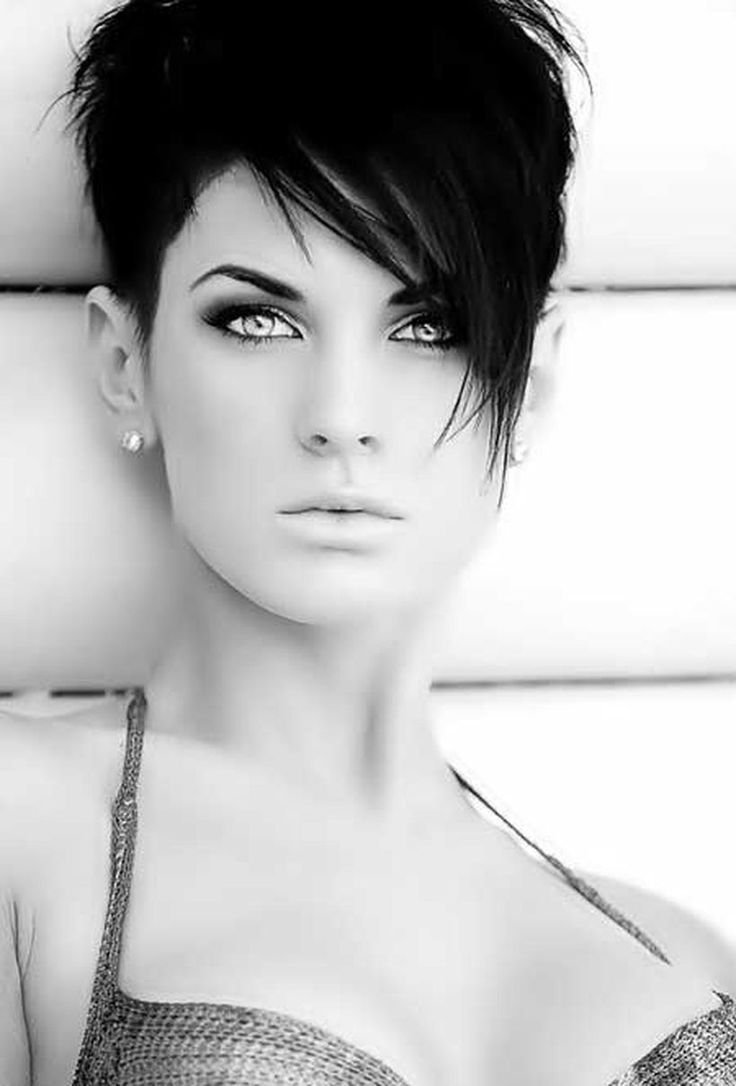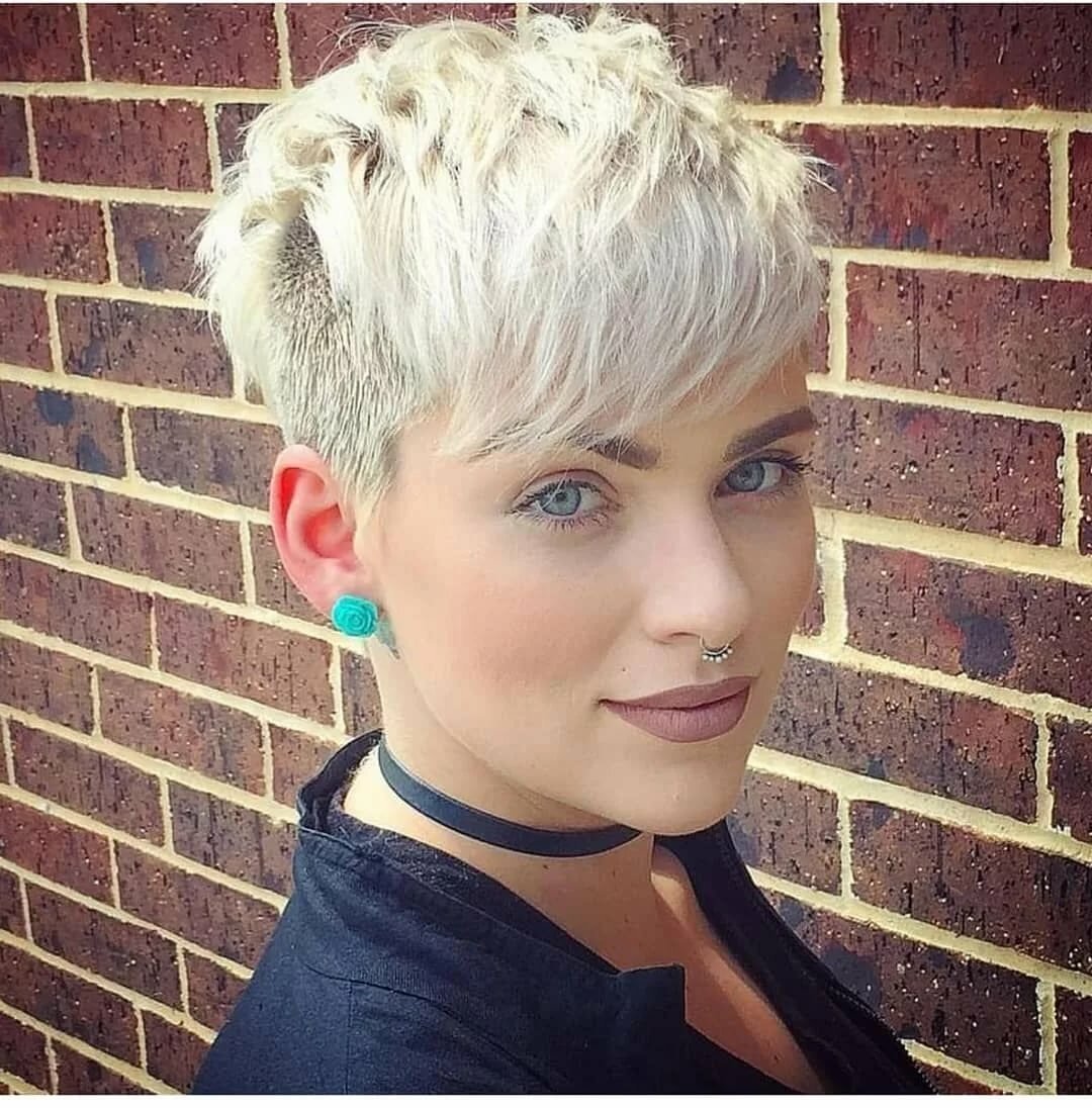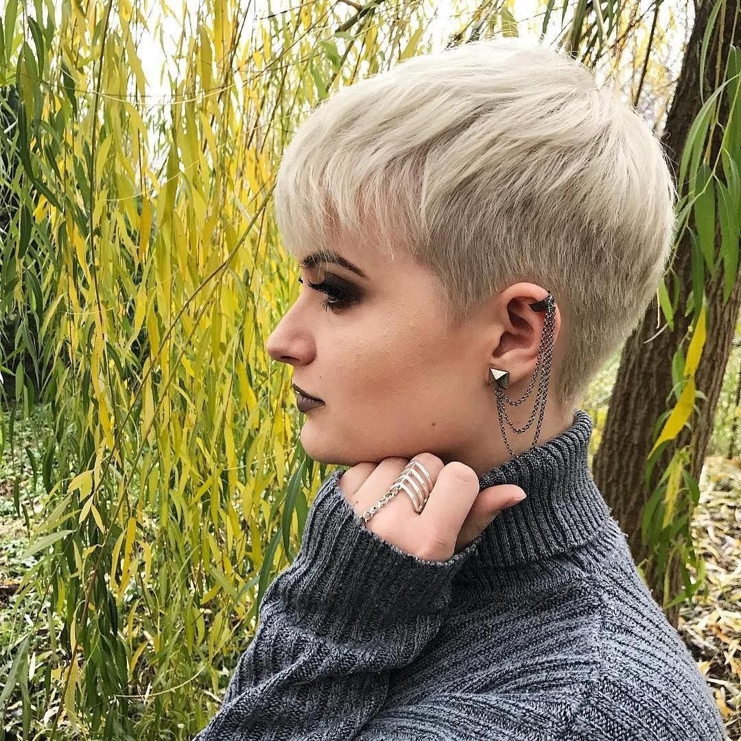 Стрижка Пикси с длинной челкой и выбритыми висками