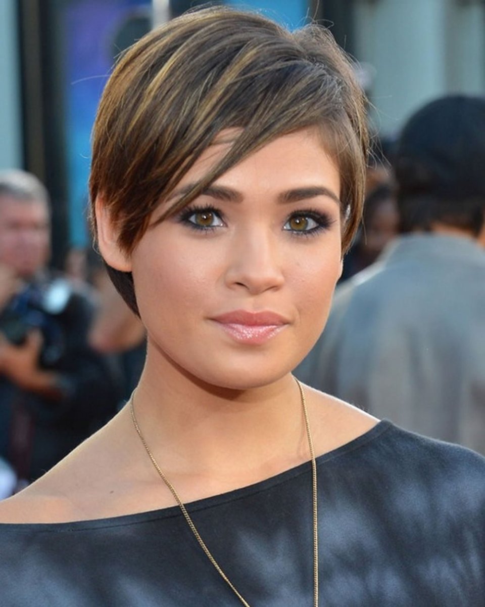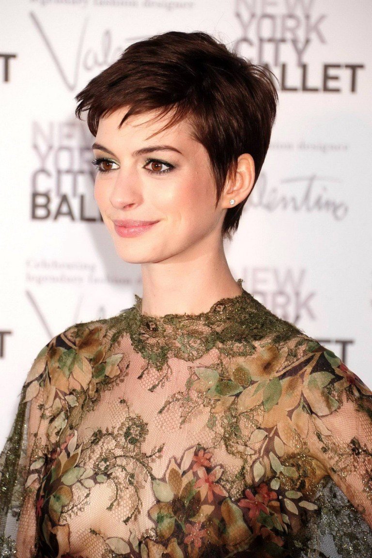 Энн Хэтэуэй с короткой стрижкой в профиль