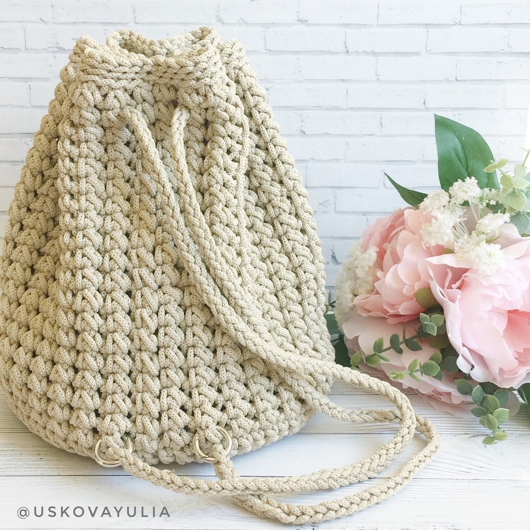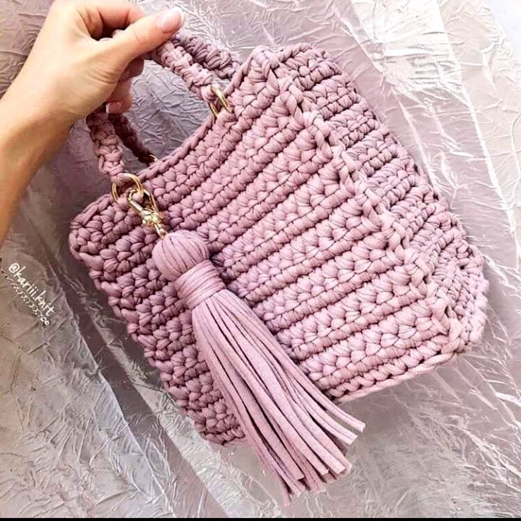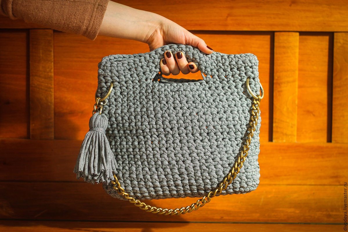 Вязаная сумка из полиэфирного шнура крючком схема и описание