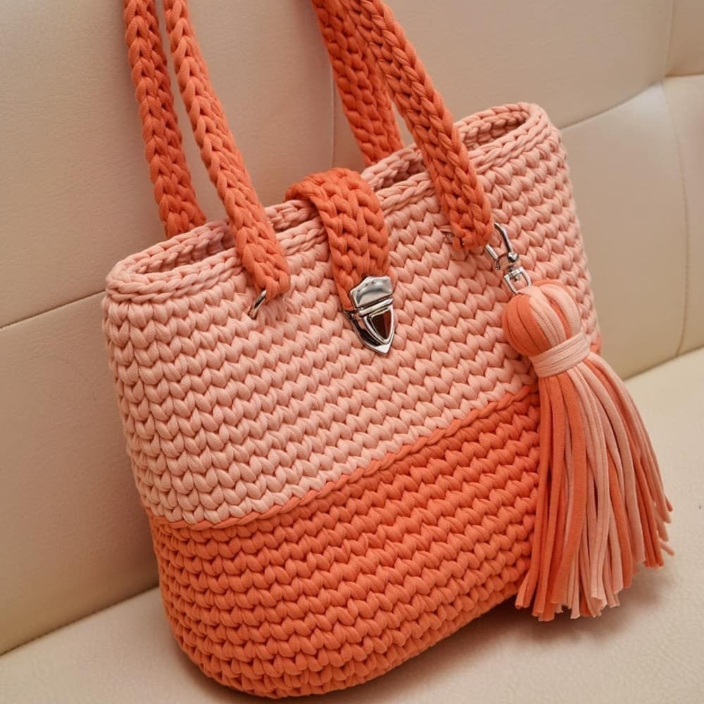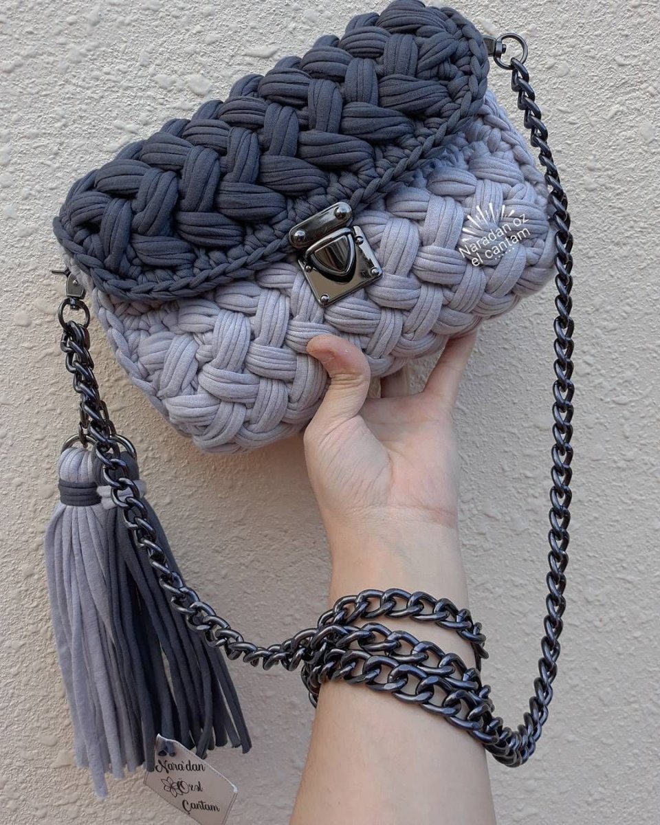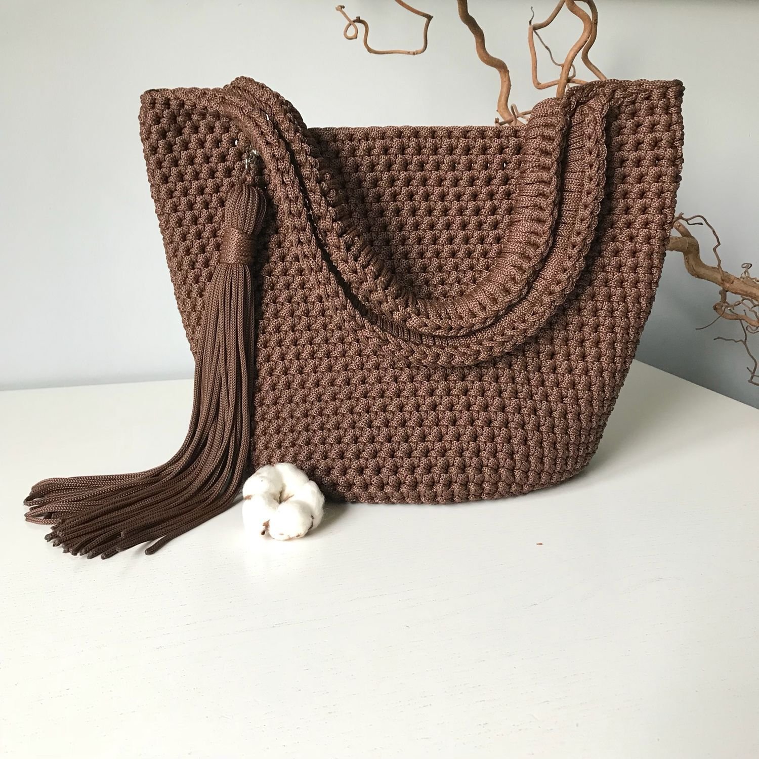 Вязаная сумка из полиэфирного шнура крючком схема и описание