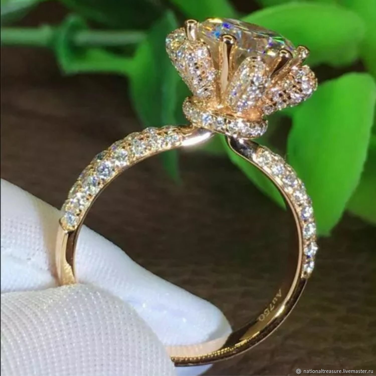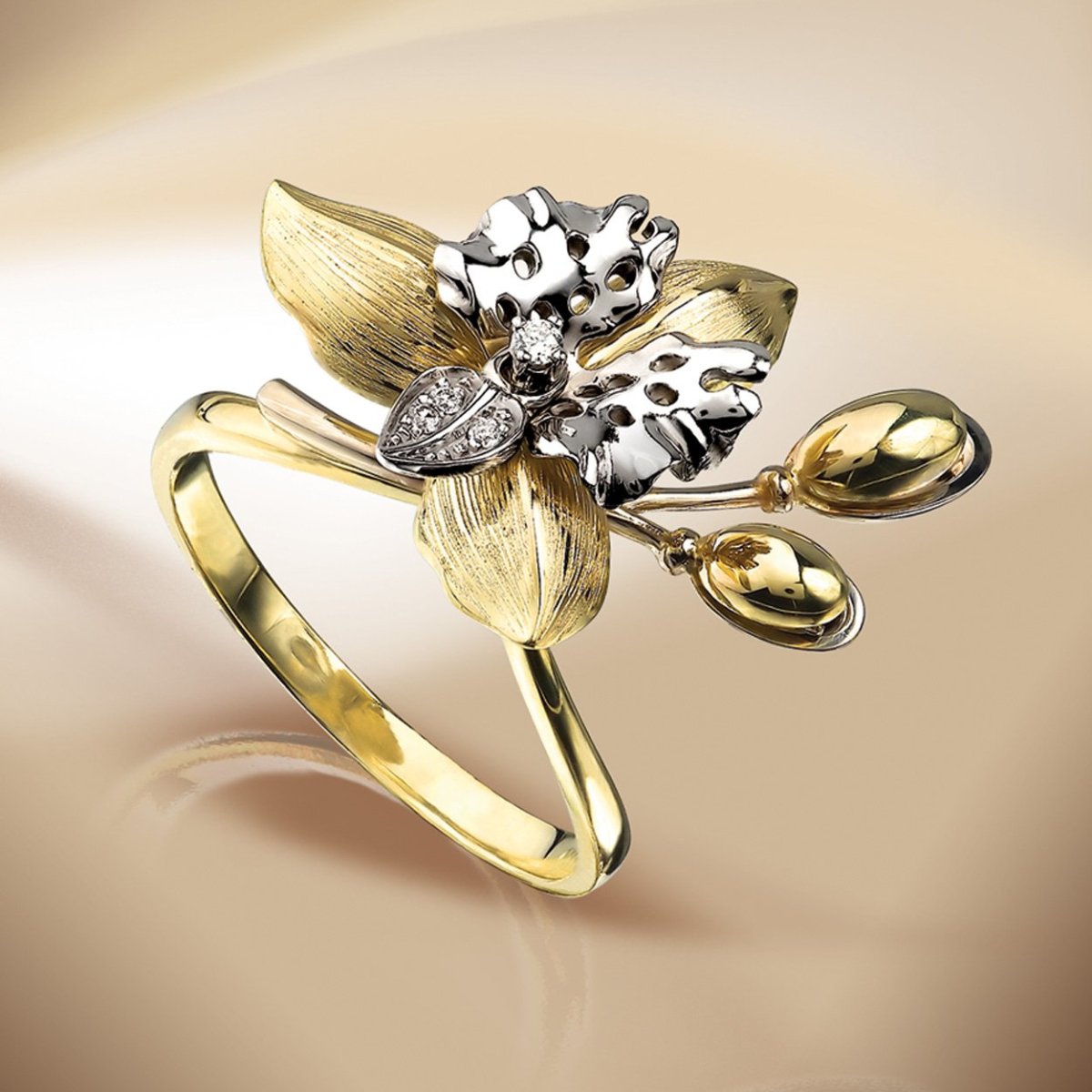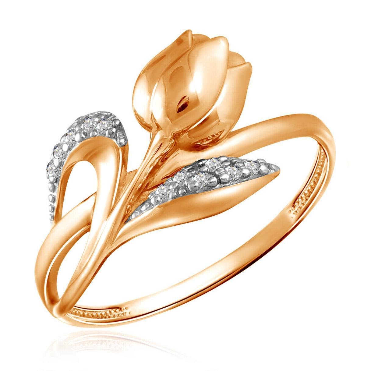 Золотое кольцо тюльпан с бриллиантом 585 пробы с бриллиантом