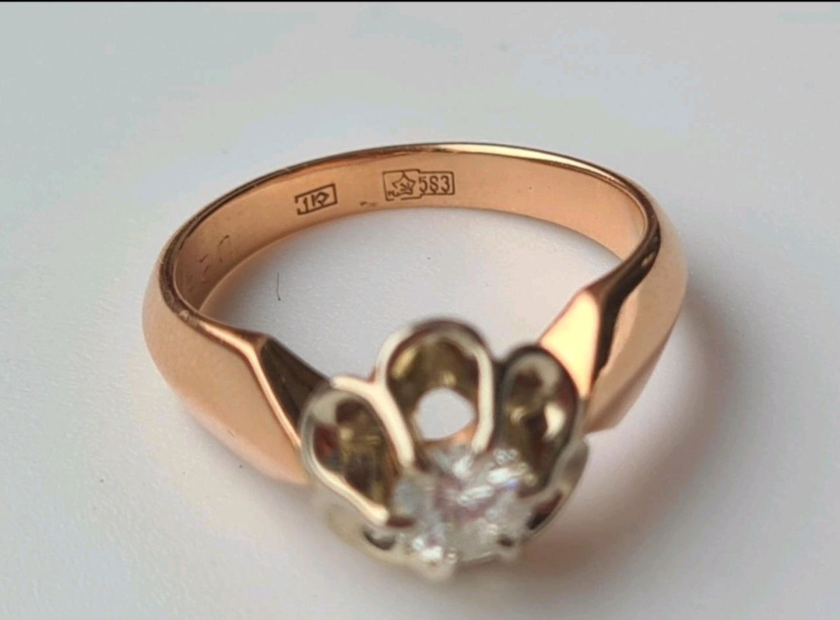 Кольцо тюльпан с бриллиантом СССР 1 карат