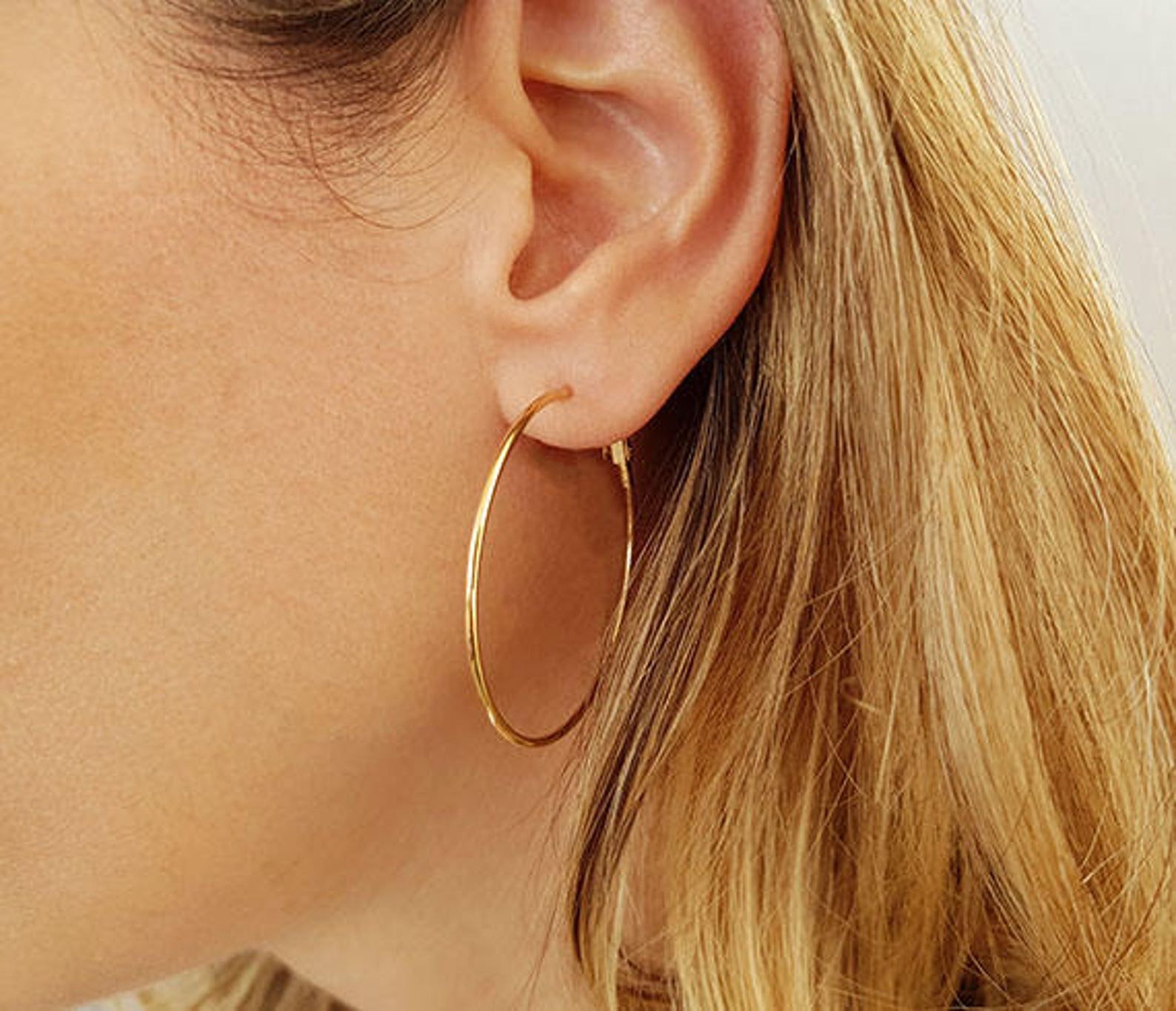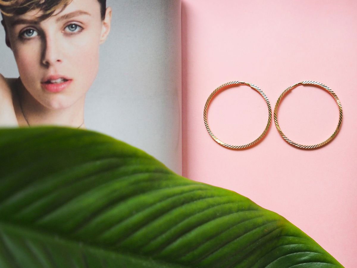 Серьги кольца золотые на девушке
