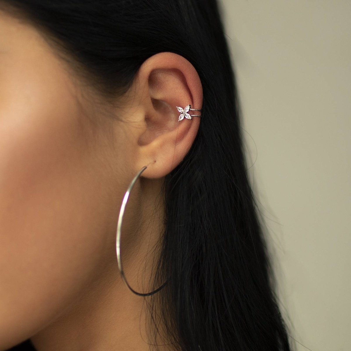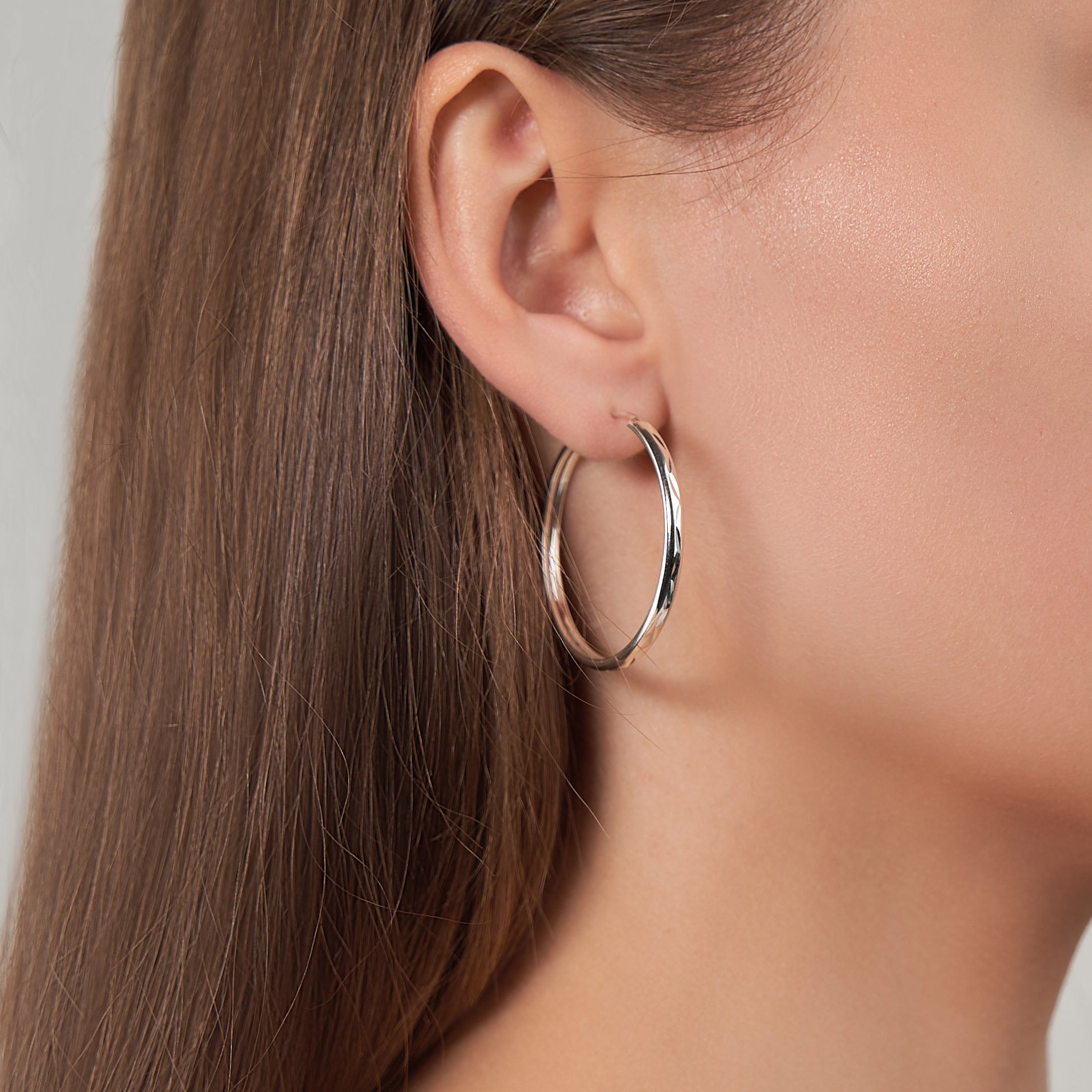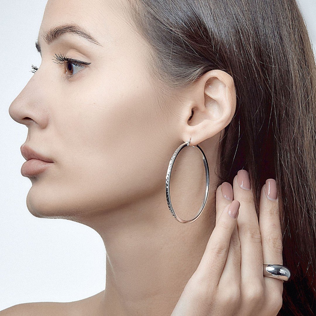 Серьги кольца на ушах