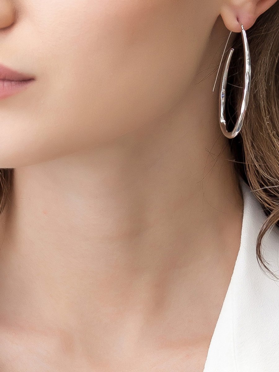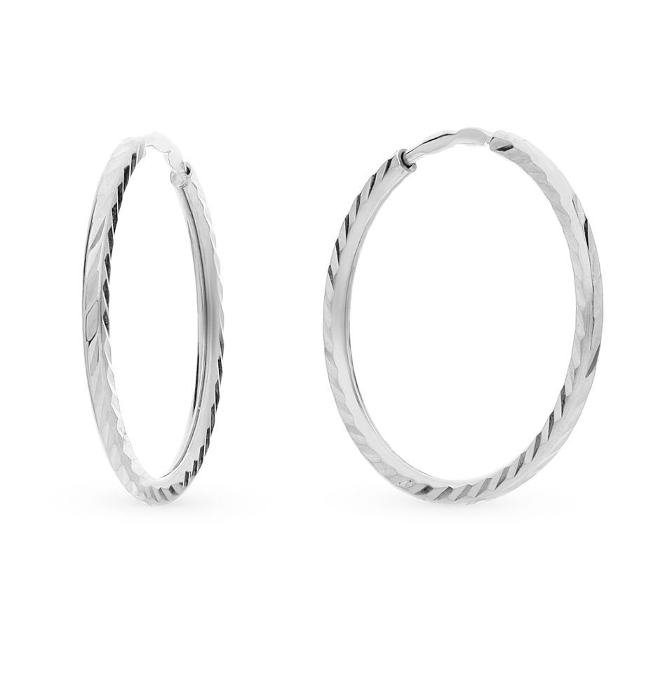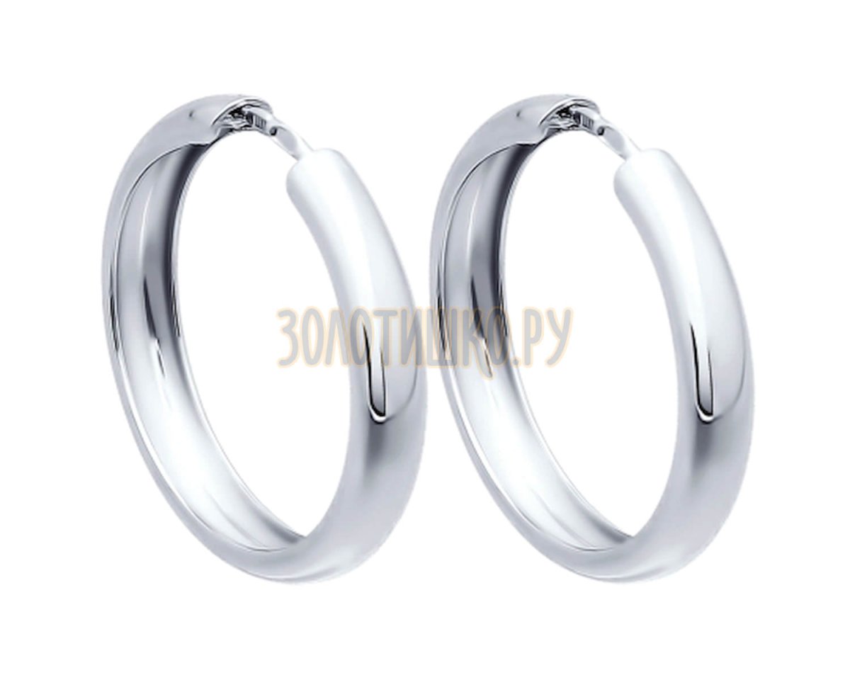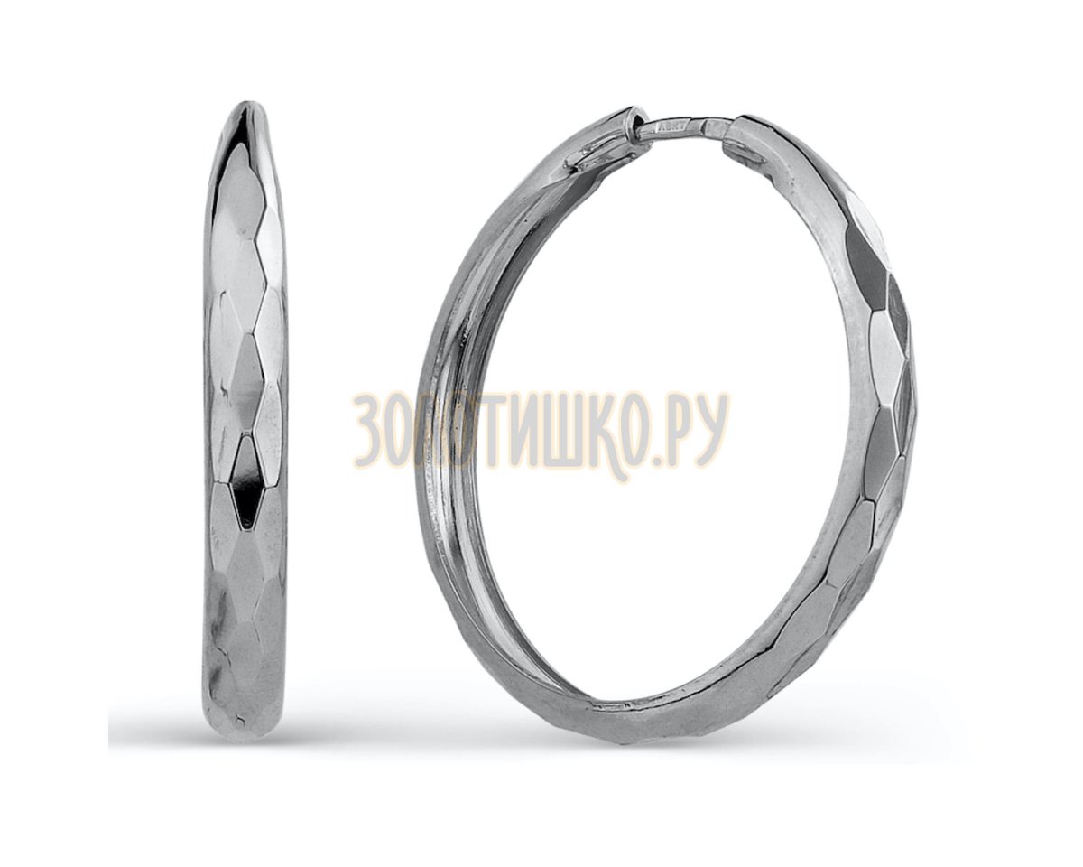 Серьги кольца Конго из белого золота линия любви д20