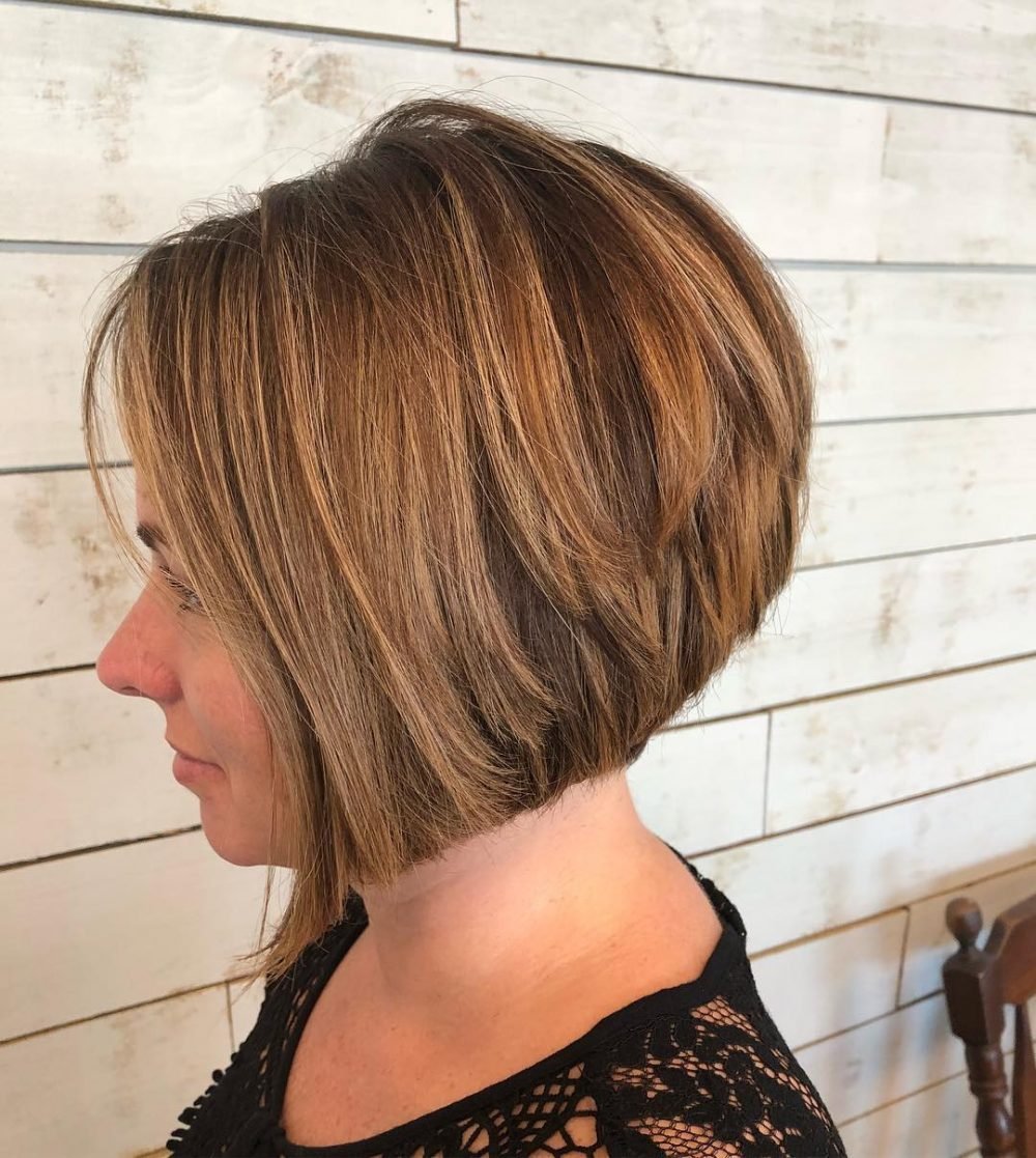 Стрижка Боб каре градуированное на средние волосы с челкой