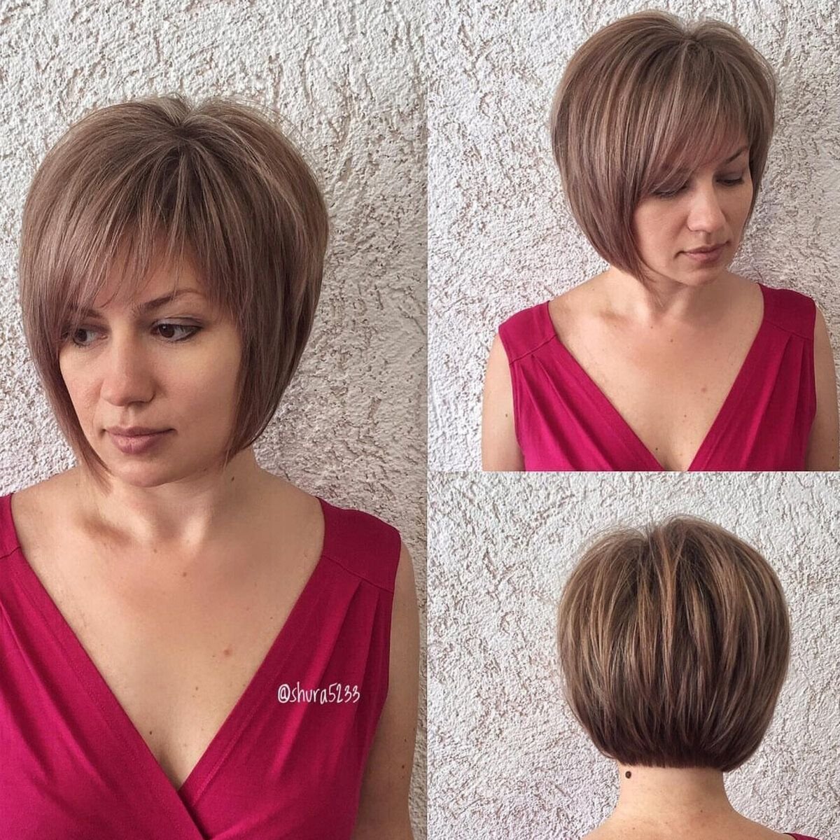 Градуированный Боб на средние волосы с челкой и макушкой