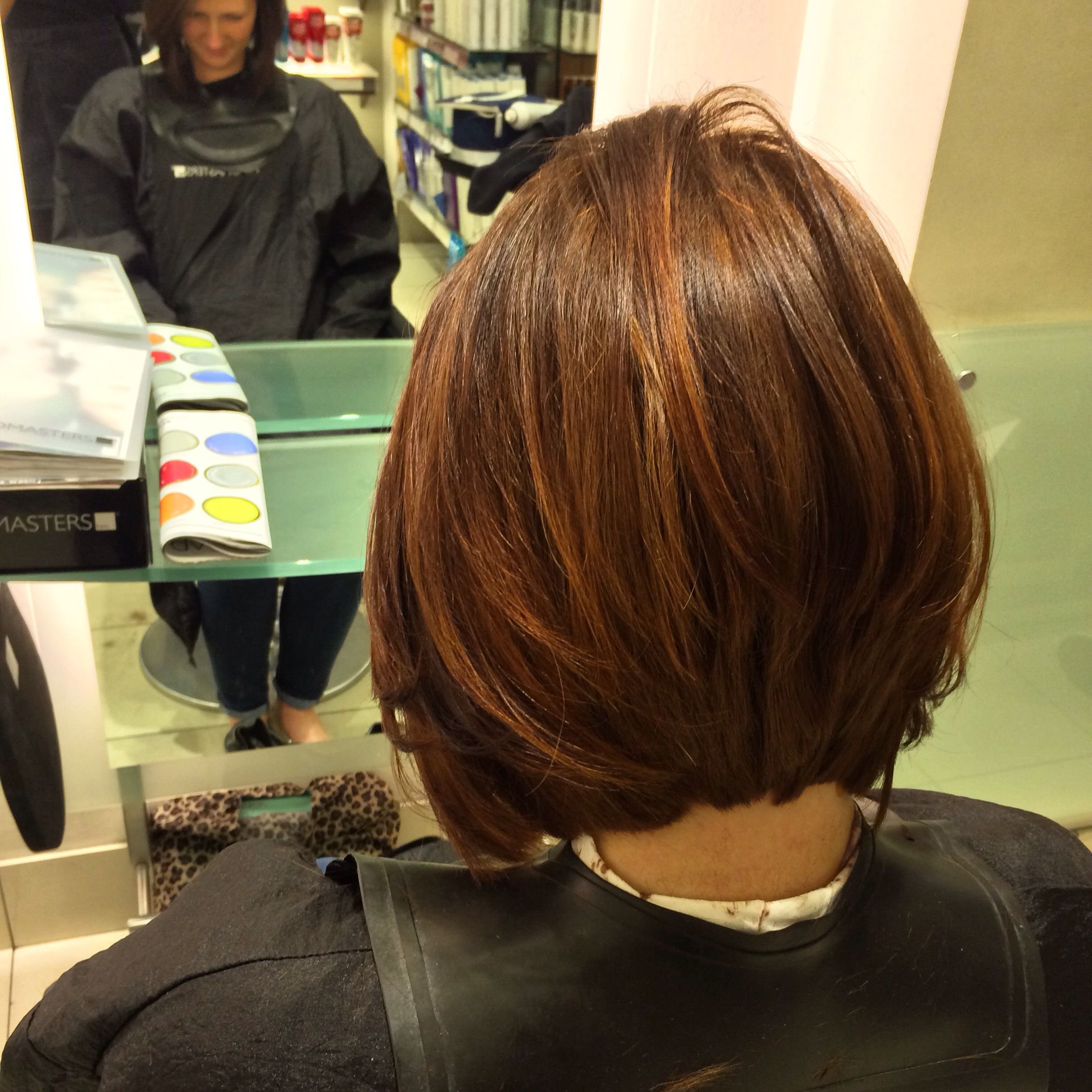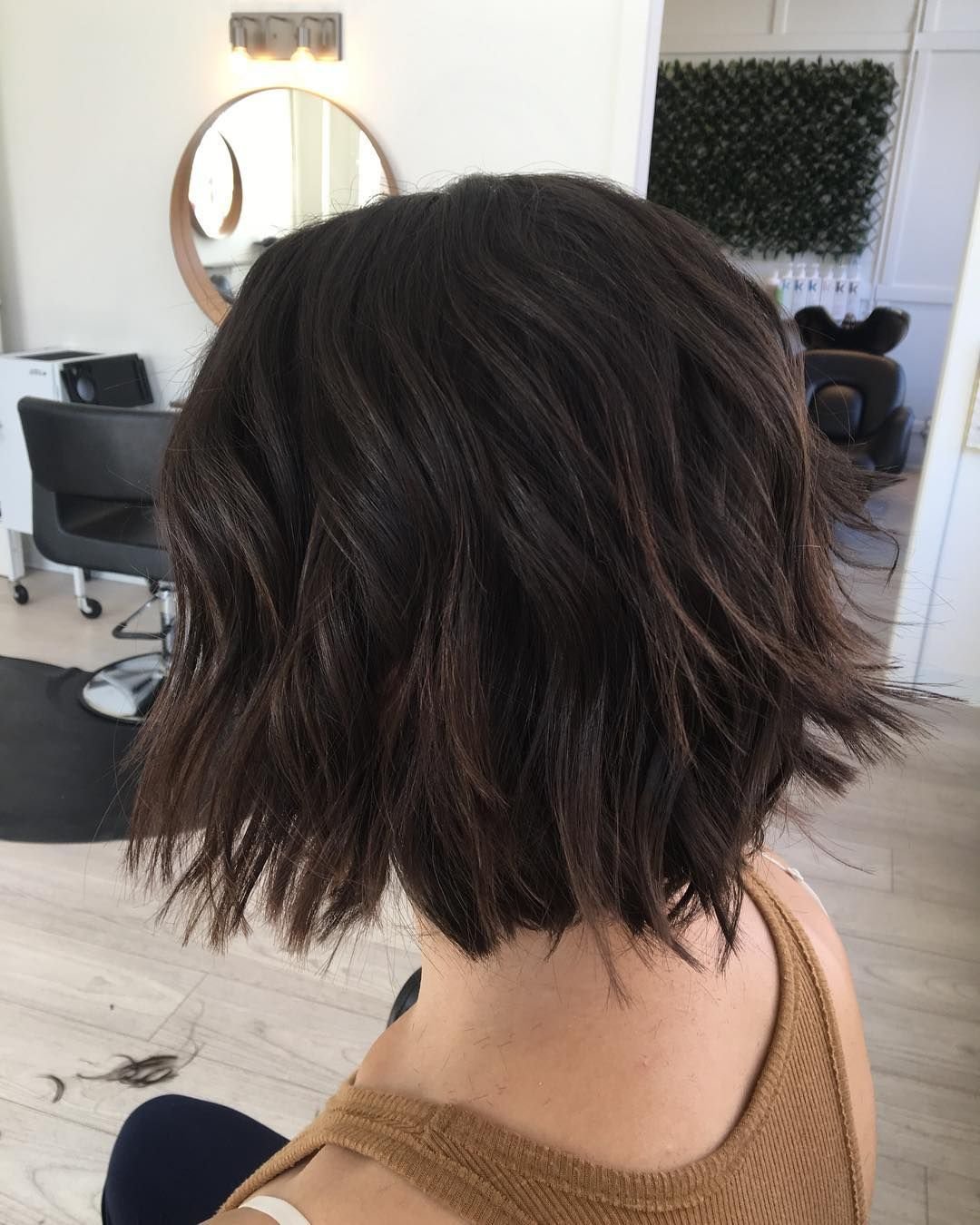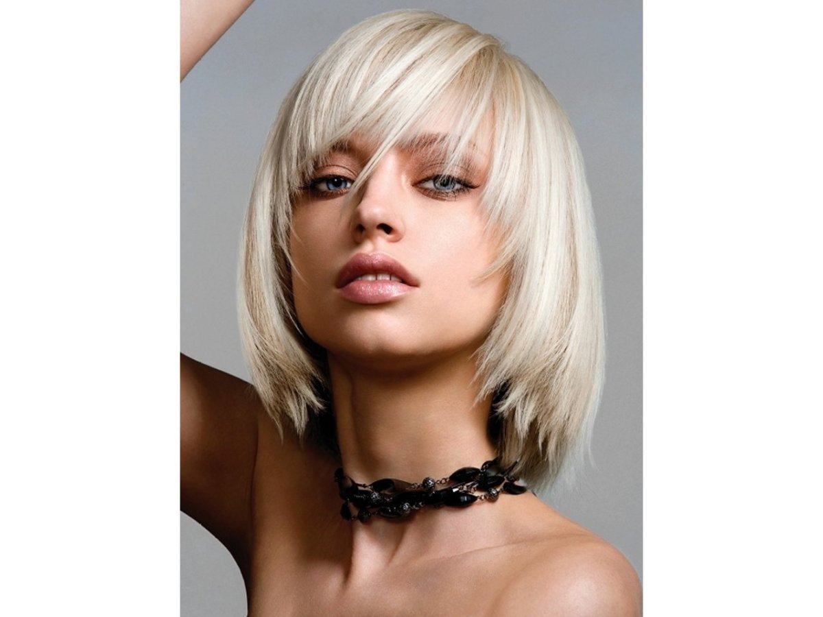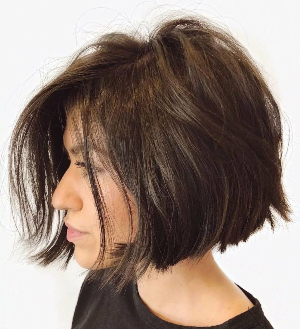 Удлиненное градуированное каре с челкой и объемом на макушке