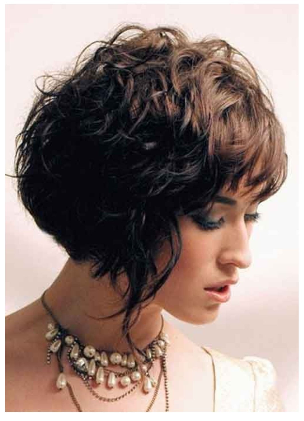 Стрижка Боб градуированный на короткие волнистые волосы с челкой