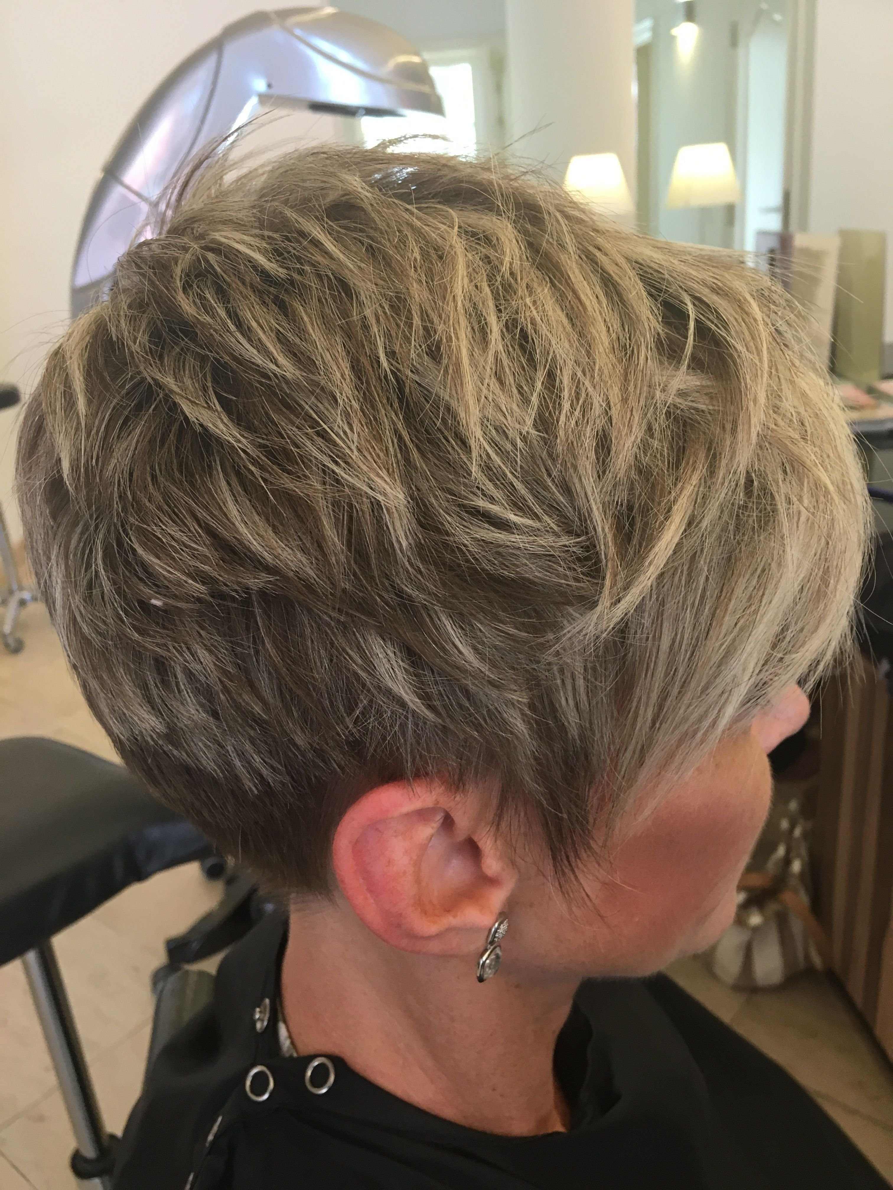 Мелирование седых волос короткая стрижка Пикси