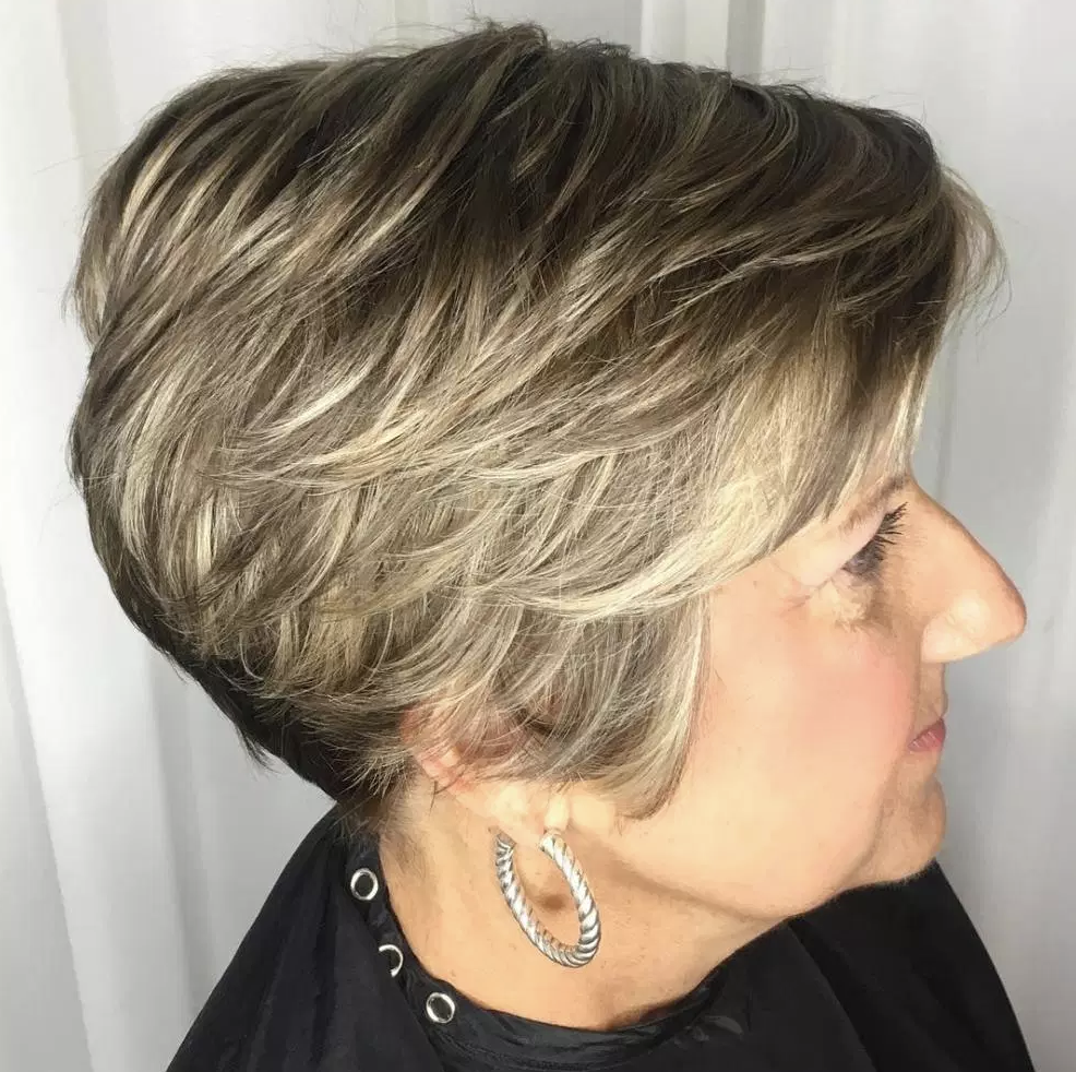 Стрижка на короткие волосы с мелированием за 50 лет